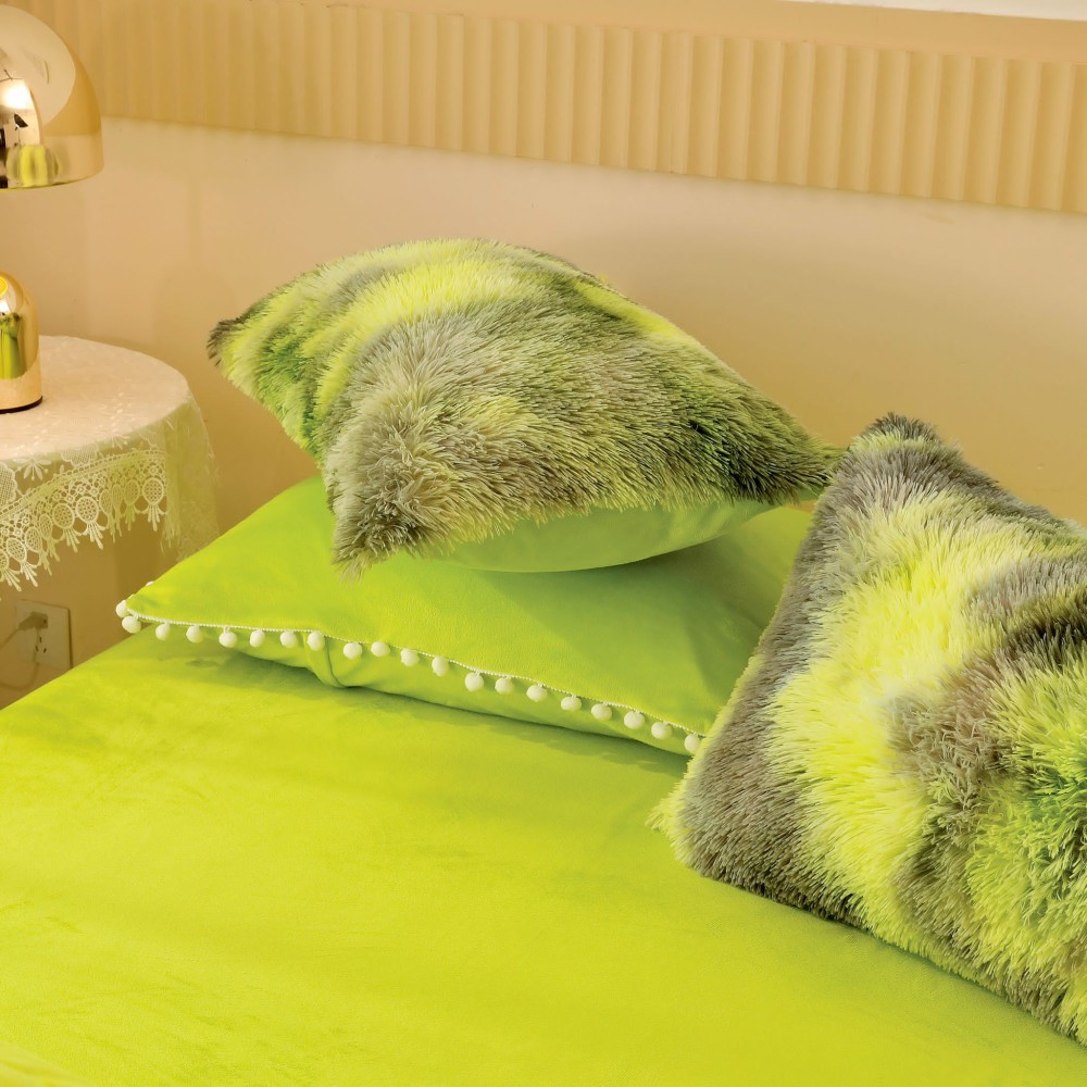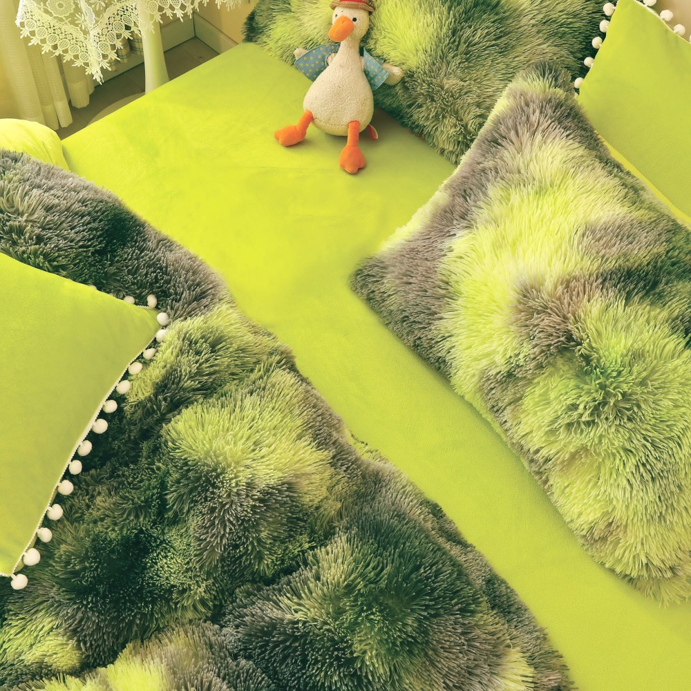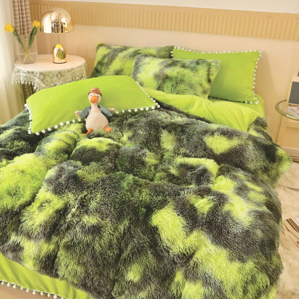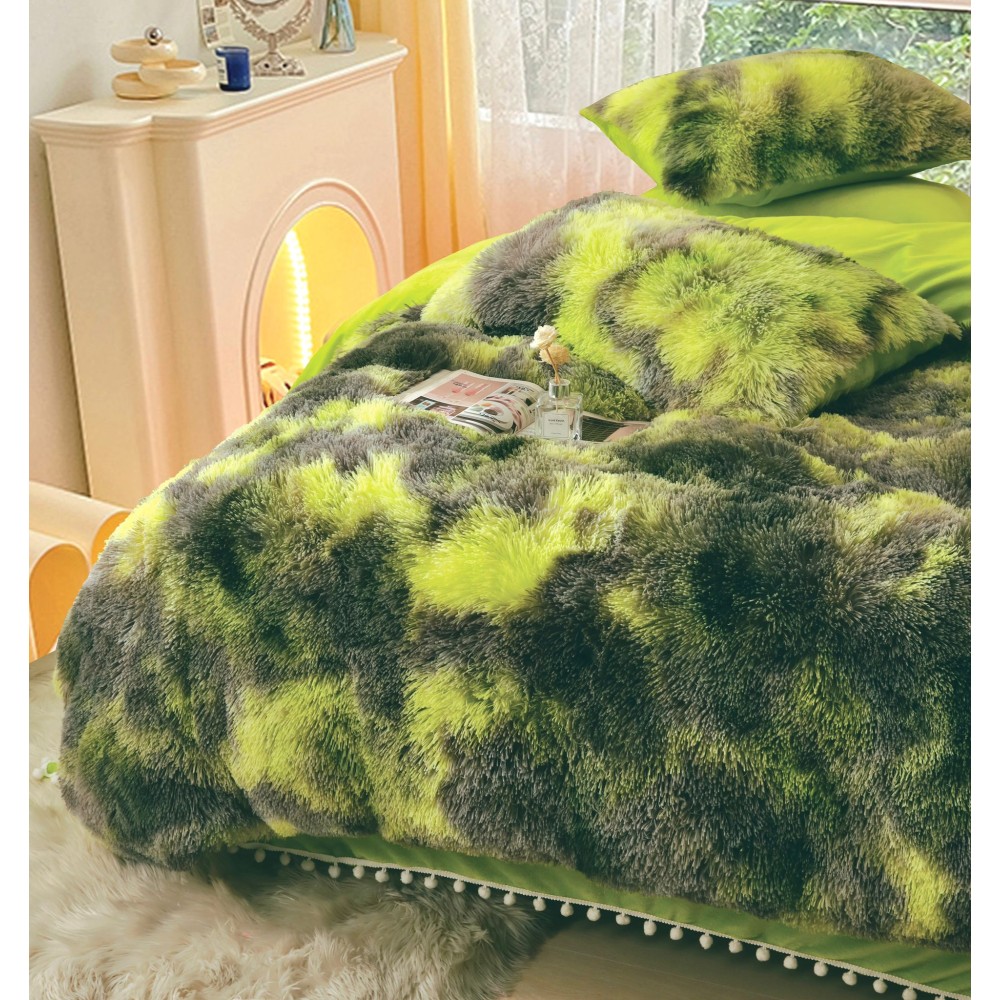 Lenjerie pat super pufoasa COCOLINO Fluffy cu ciucuri, 6 piese, Verde - Multicolor, cod produs: FLF216