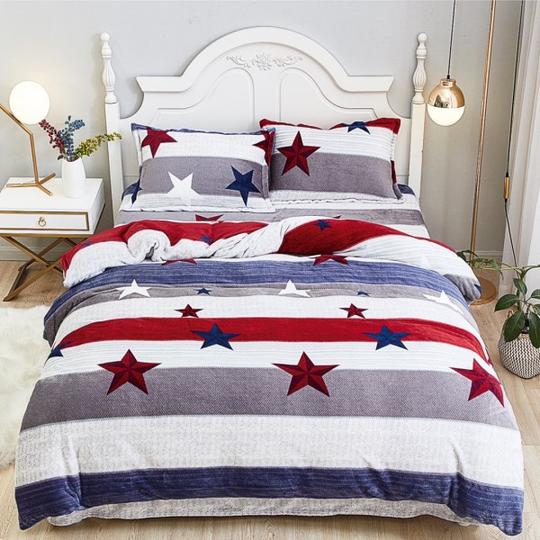 Lenjerie pentru Pat Dublu, Cocolino Premium, 4 Piese – Plușată, Groasă, și Călduroasă, Ideală pentru Iarnă – Confort Maxim, Antișifonare, Alb, Gri, dungi, stelute, CumparaMisim, cod produs: SDP-CC21