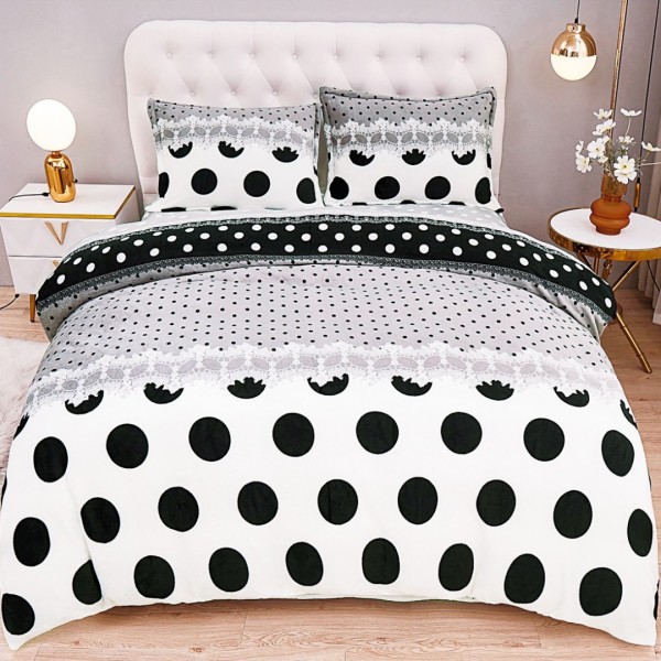 Lenjerie pentru Pat Dublu, Cocolino Premium, 4 Piese – Plușată, Groasă, și Călduroasă, Ideală pentru Iarnă – Confort Maxim, Antișifonare, Alb, Negru, buline, CumparaMisim, cod produs: SDP-CC17