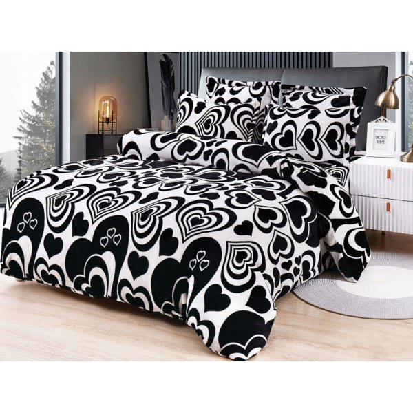 Lenjerie pentru Pat Dublu, Cocolino Premium, 4 Piese – Plușată, Groasă, și Călduroasă, Ideală pentru Iarnă – Confort Maxim, Antișifonare, Alb, Negru, inimioare, CumparaMisim, cod produs: YAF226