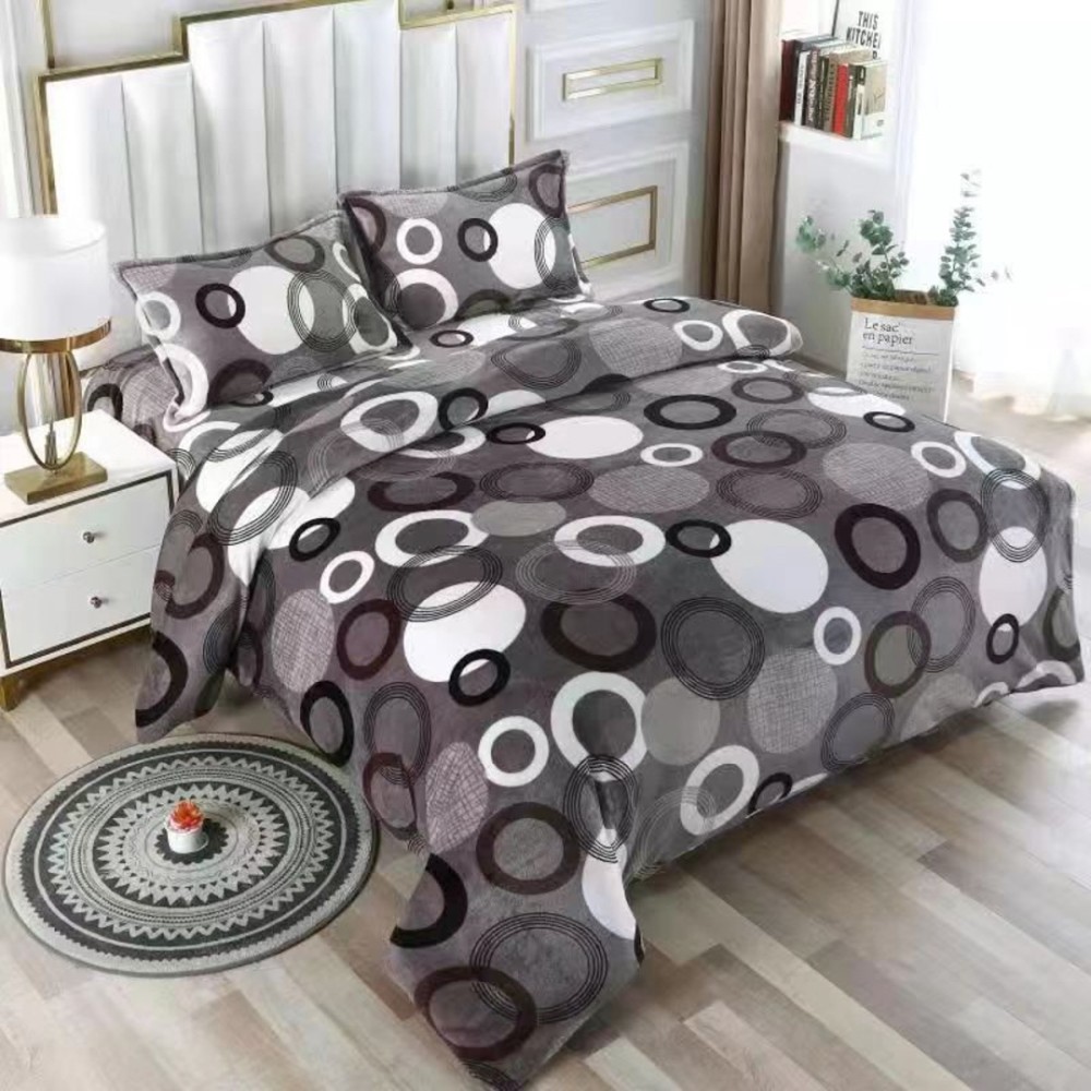 Lenjerie pentru Pat Dublu, Cocolino Premium, 4 Piese – Plușată, Groasă, și Călduroasă, Ideală pentru Iarnă – Confort Maxim, Antișifonare, Gri, cercuri, CumparaMisim, cod produs: YAF205