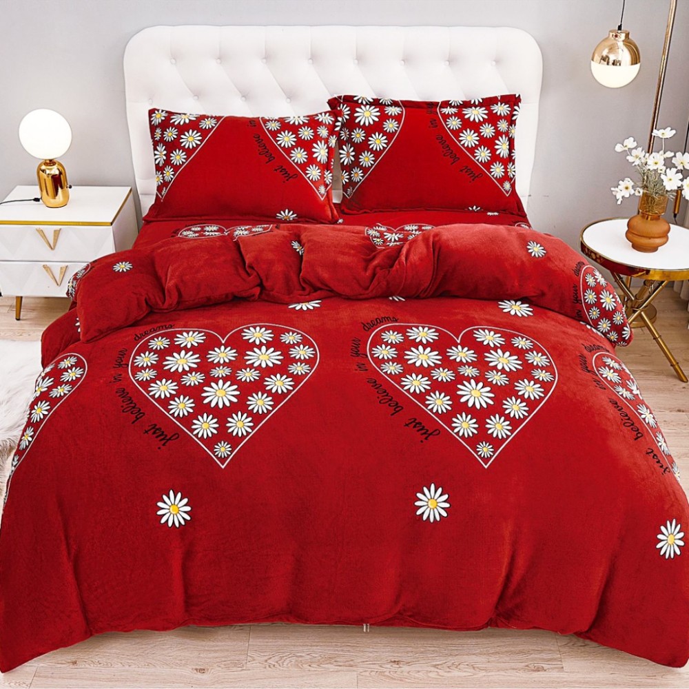Lenjerie pentru Pat Dublu, Cocolino Premium, 4 Piese – Plușată, Groasă, și Călduroasă, Ideală pentru Iarnă – Confort Maxim, Antișifonare, Roșu, Alb, inimioare, CumparaMisim, cod produs: SDP-CC14