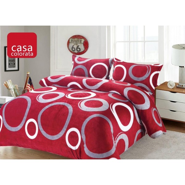 Lenjerie pentru Pat Dublu, Cocolino Premium, 4 Piese – Plușată, Groasă, și Călduroasă, Ideală pentru Iarnă – Confort Maxim, Antișifonare, Rosu, cercuri, CumparaMisim, cod produs: YAF217