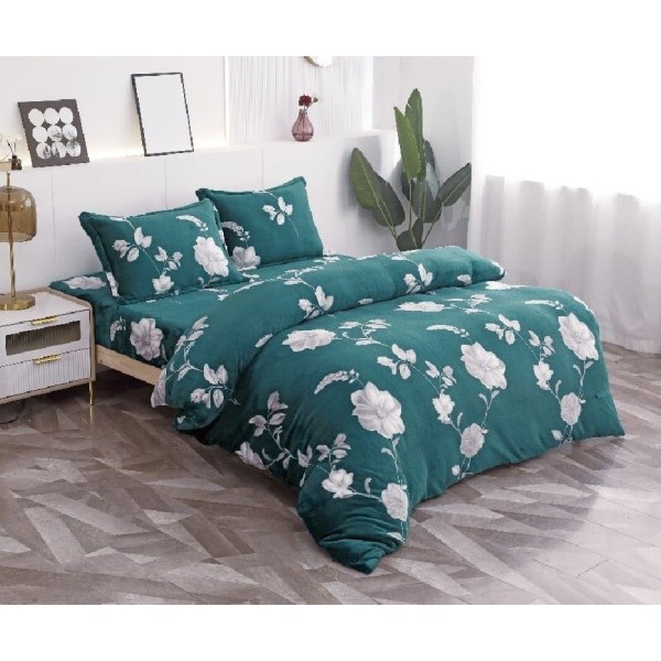 Lenjerie pentru Pat Dublu, Cocolino Premium, 4 Piese – Plușată, Groasă, și Călduroasă, Ideală pentru Iarnă – Confort Maxim, Antișifonare, Verde Petrol, flori, CumparaMisim, cod produs: YAF222
