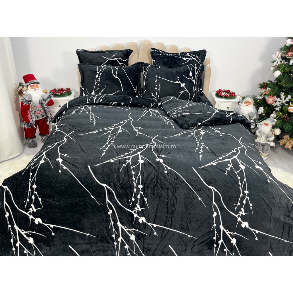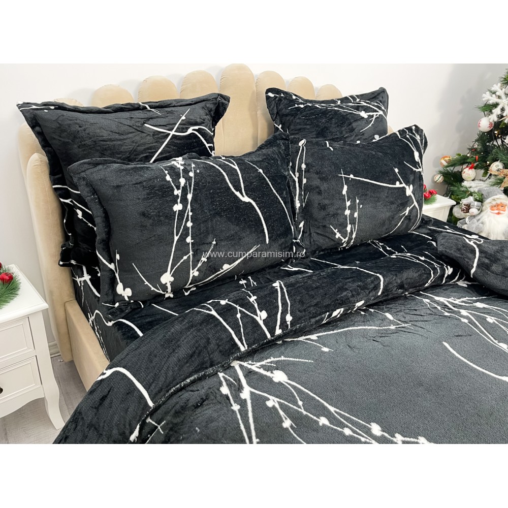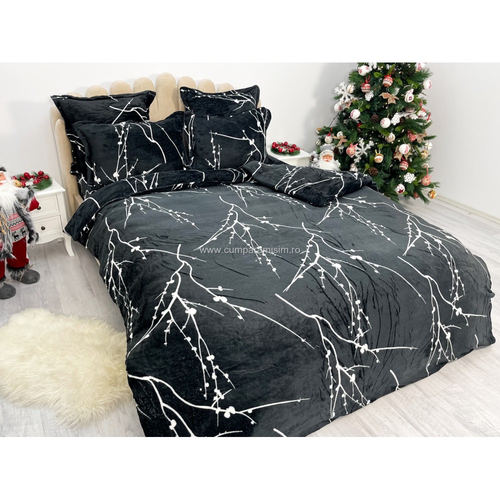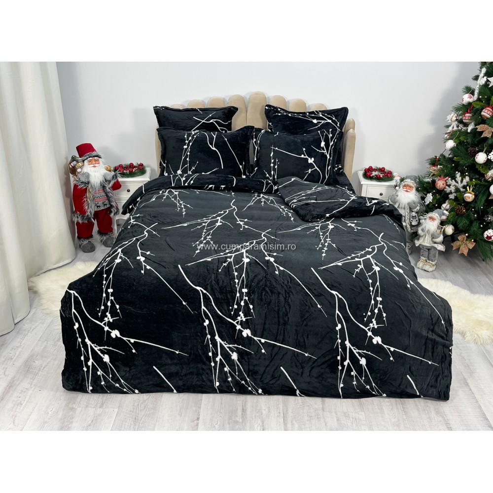 Lenjerie pat dublu, Super Pufoasa COCOLINO, 6 piese, Negru-Alb, crengute, cod produs: CWW44