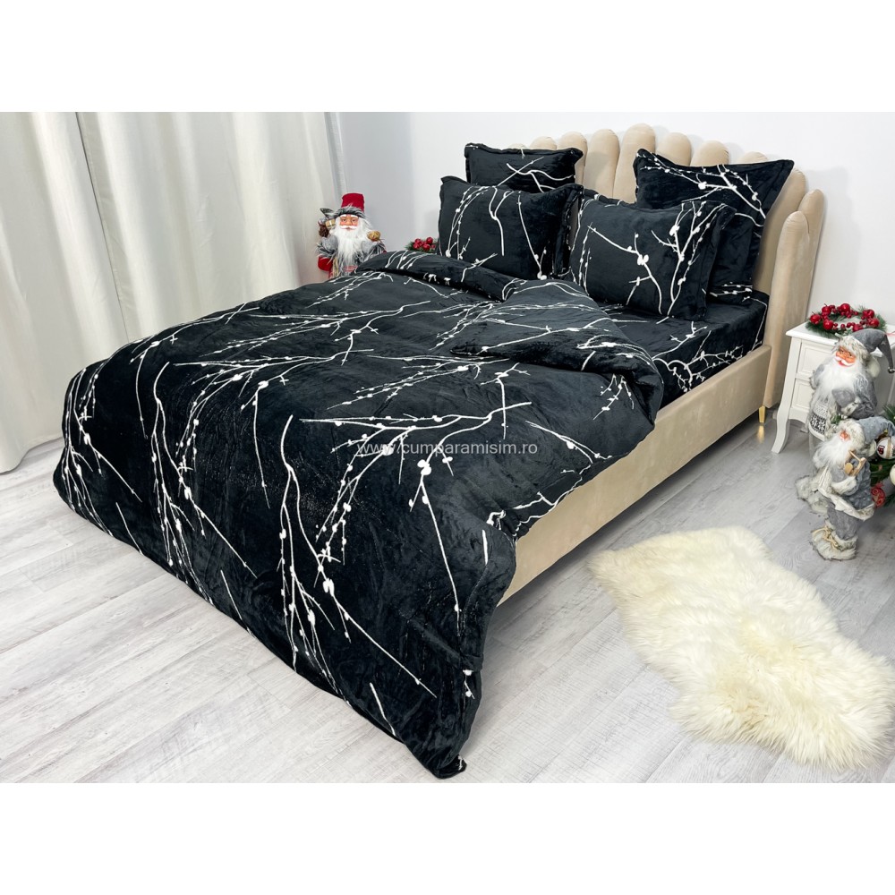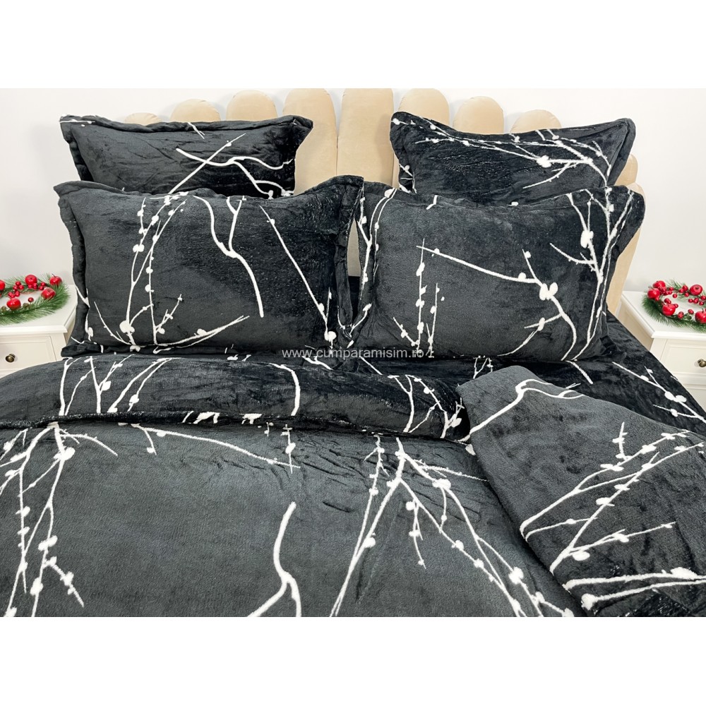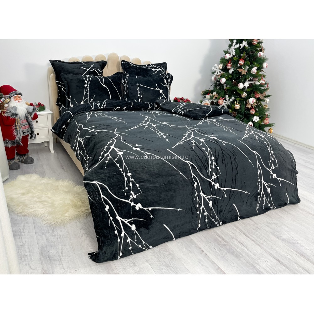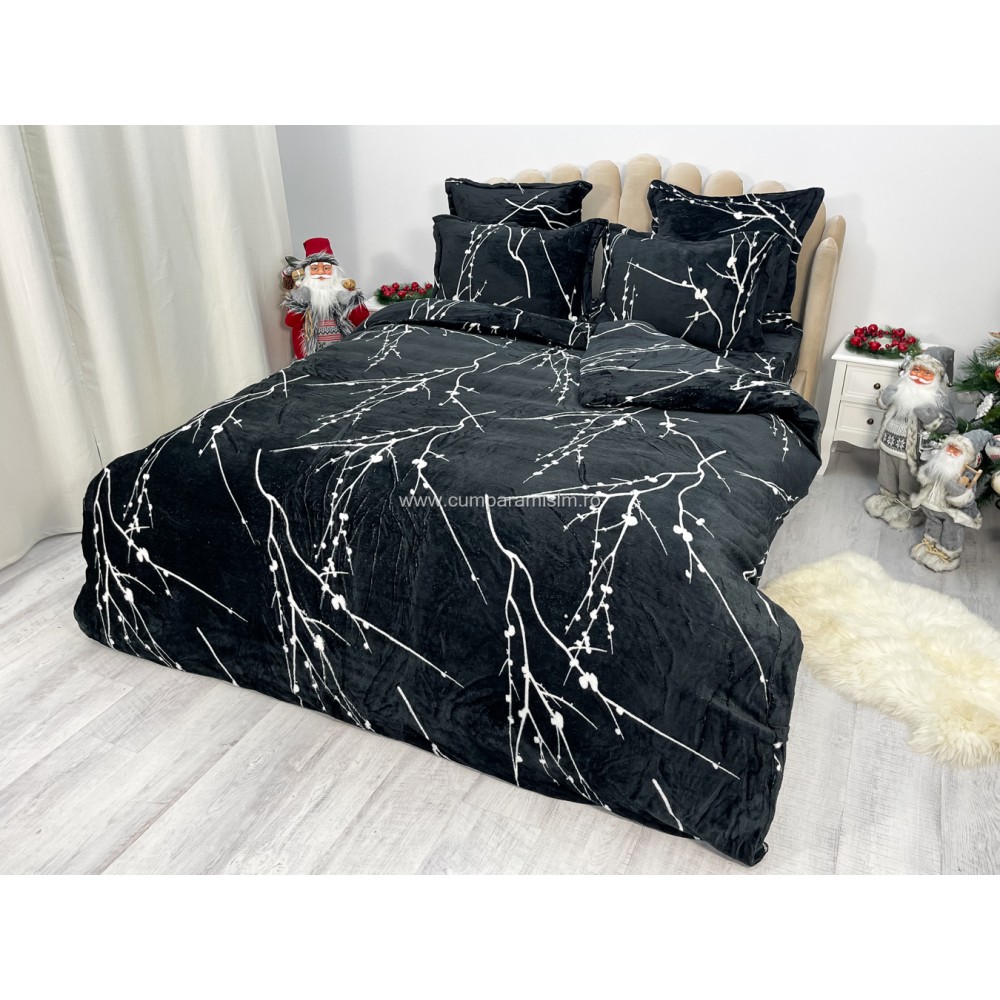 Lenjerie pat dublu, Super Pufoasa COCOLINO, 6 piese, Negru-Alb, crengute, cod produs: CWW44