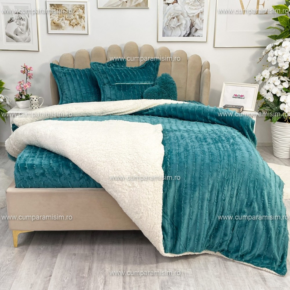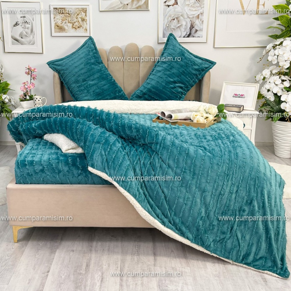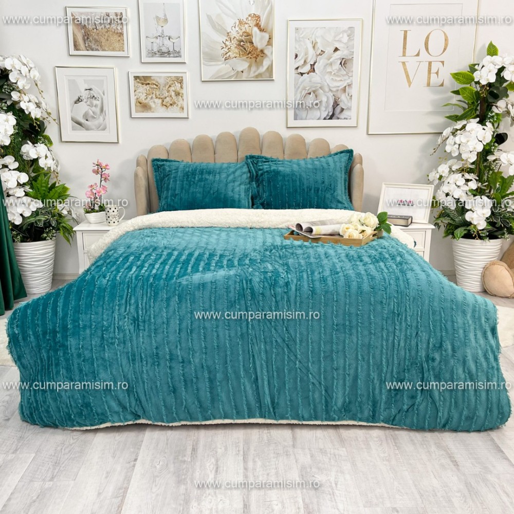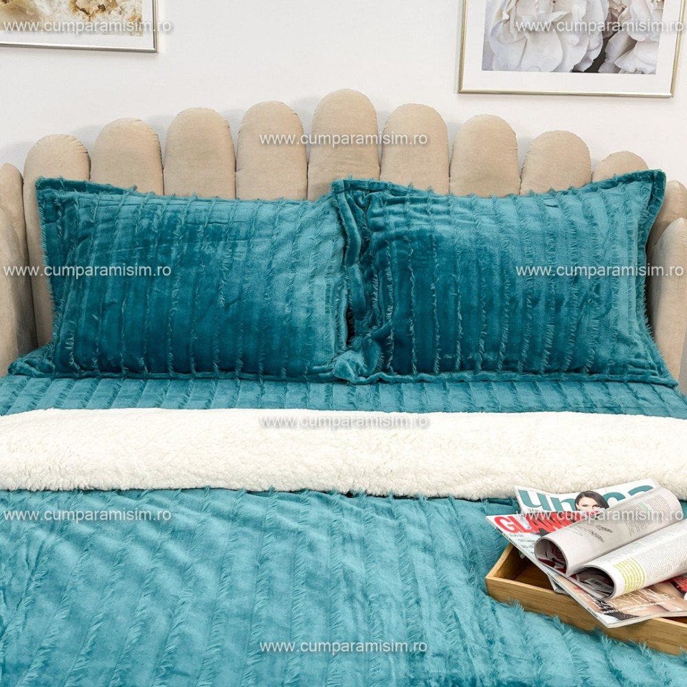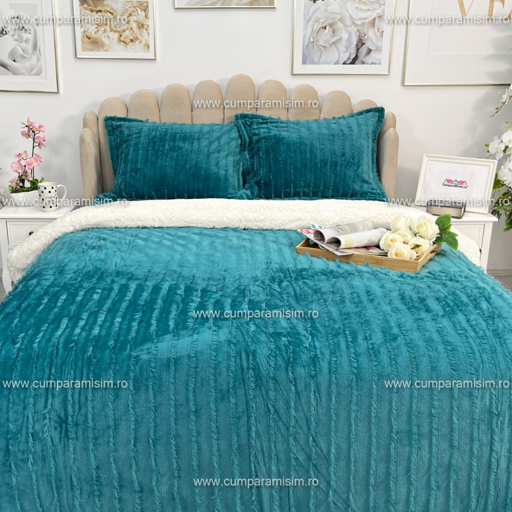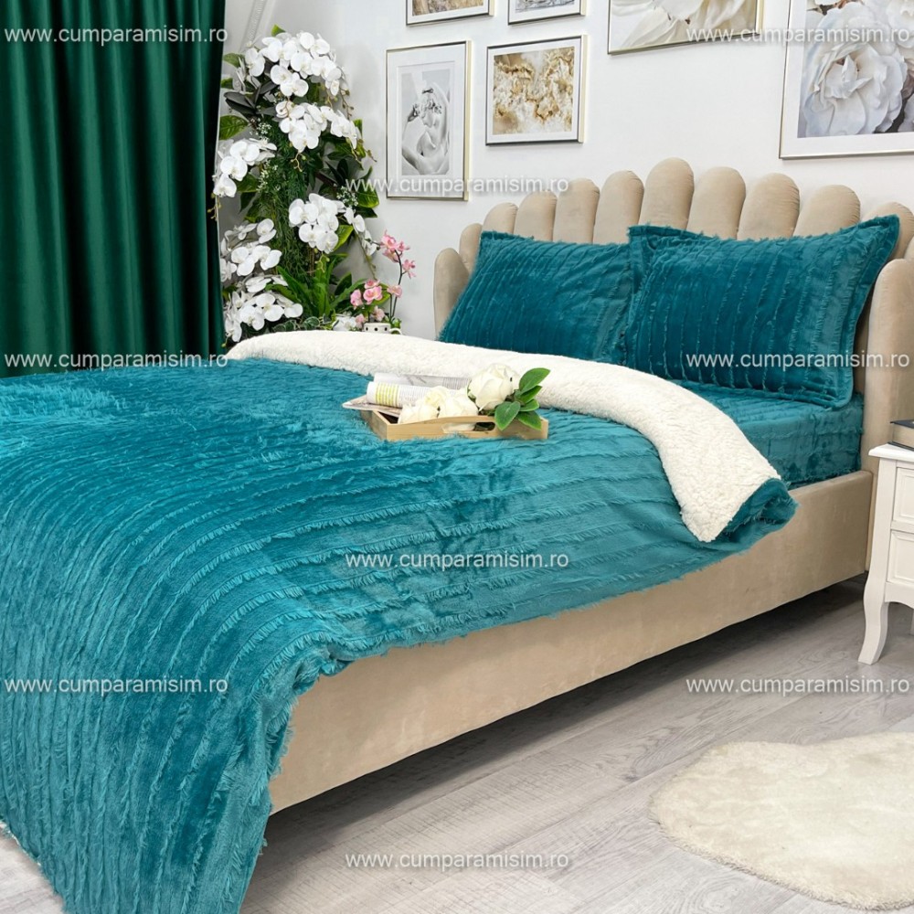 Lenjerie pentru pat dublu pufoasa CoCoLiNo, cu smocuri, 4 piese, Turquoise, cod produs: CCP55