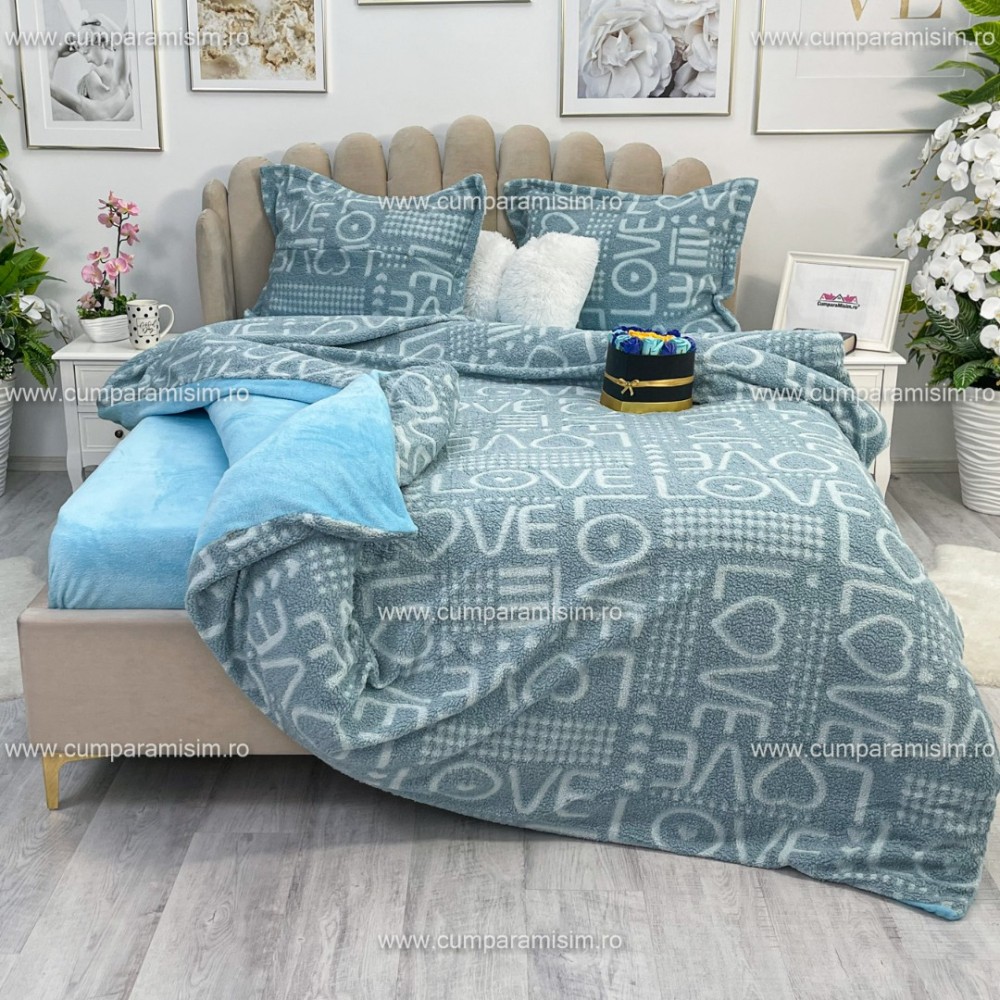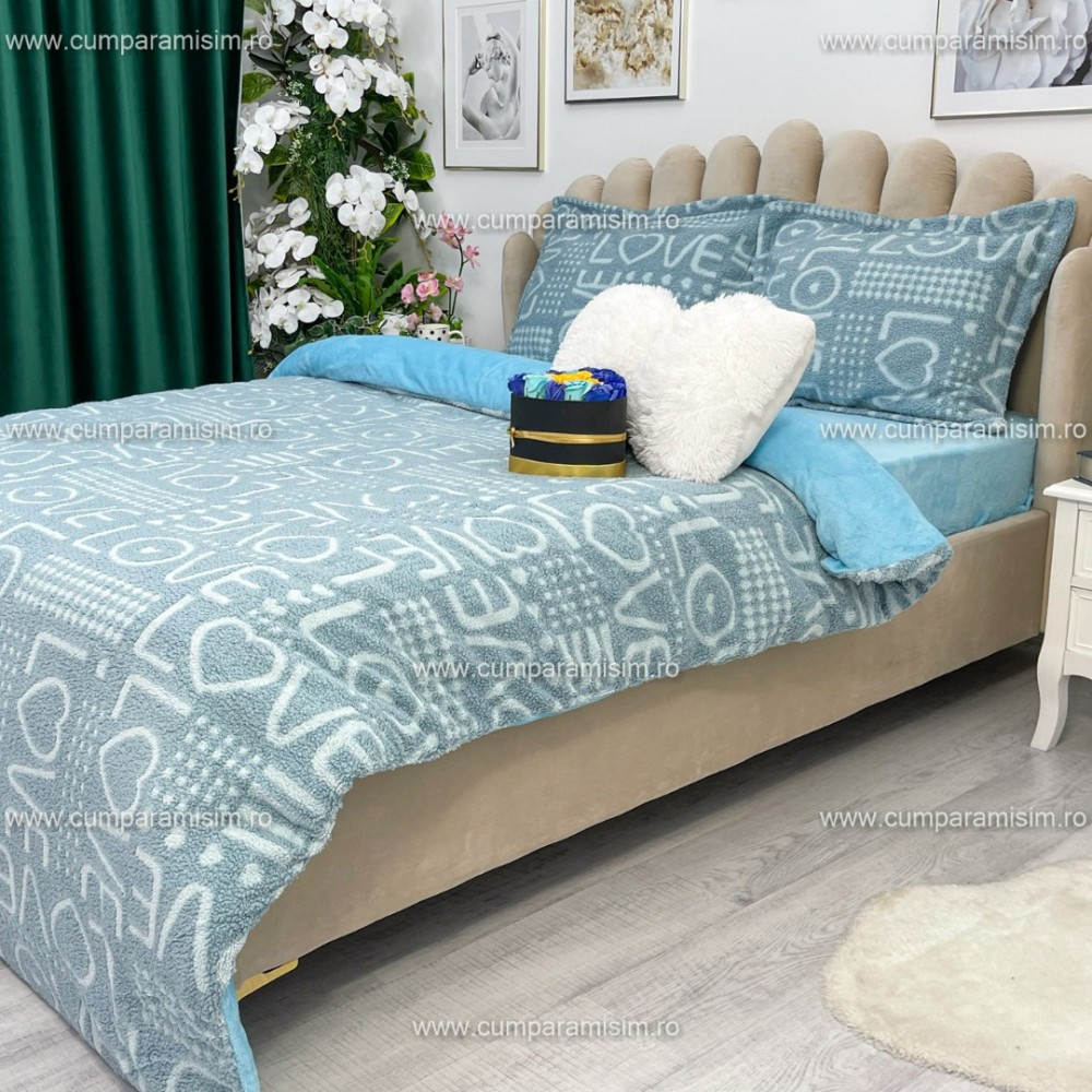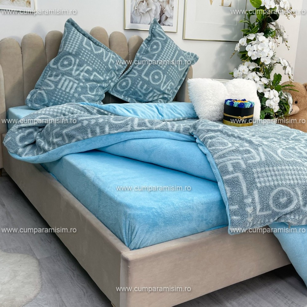 Lenjerie pentru pat dublu pufoasa CoCoLiNo, tip tricotaj, 4 piese, Albastru, cod produs: CCP52