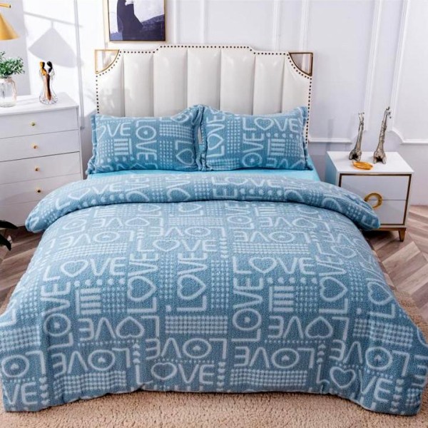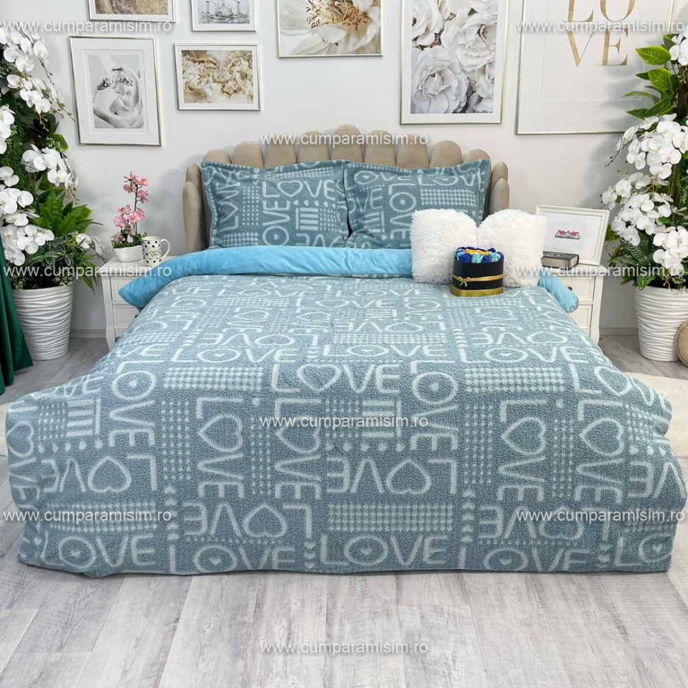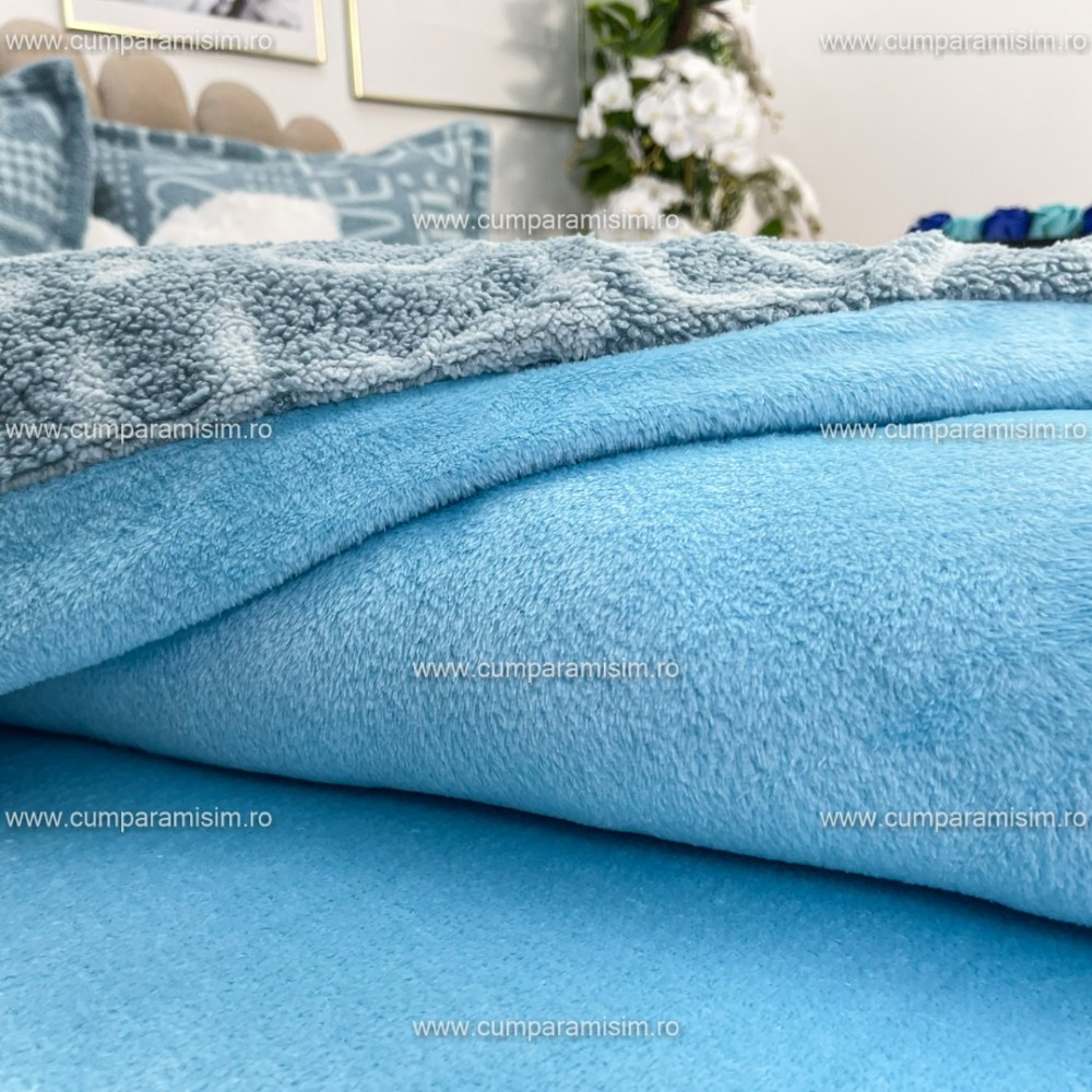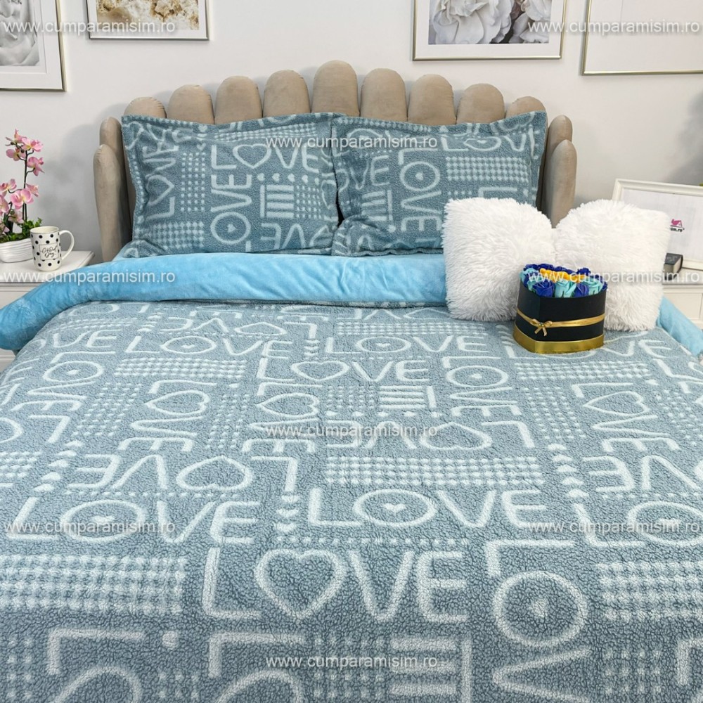 Lenjerie pentru pat dublu pufoasa CoCoLiNo, tip tricotaj, 4 piese, Albastru, cod produs: CCP52