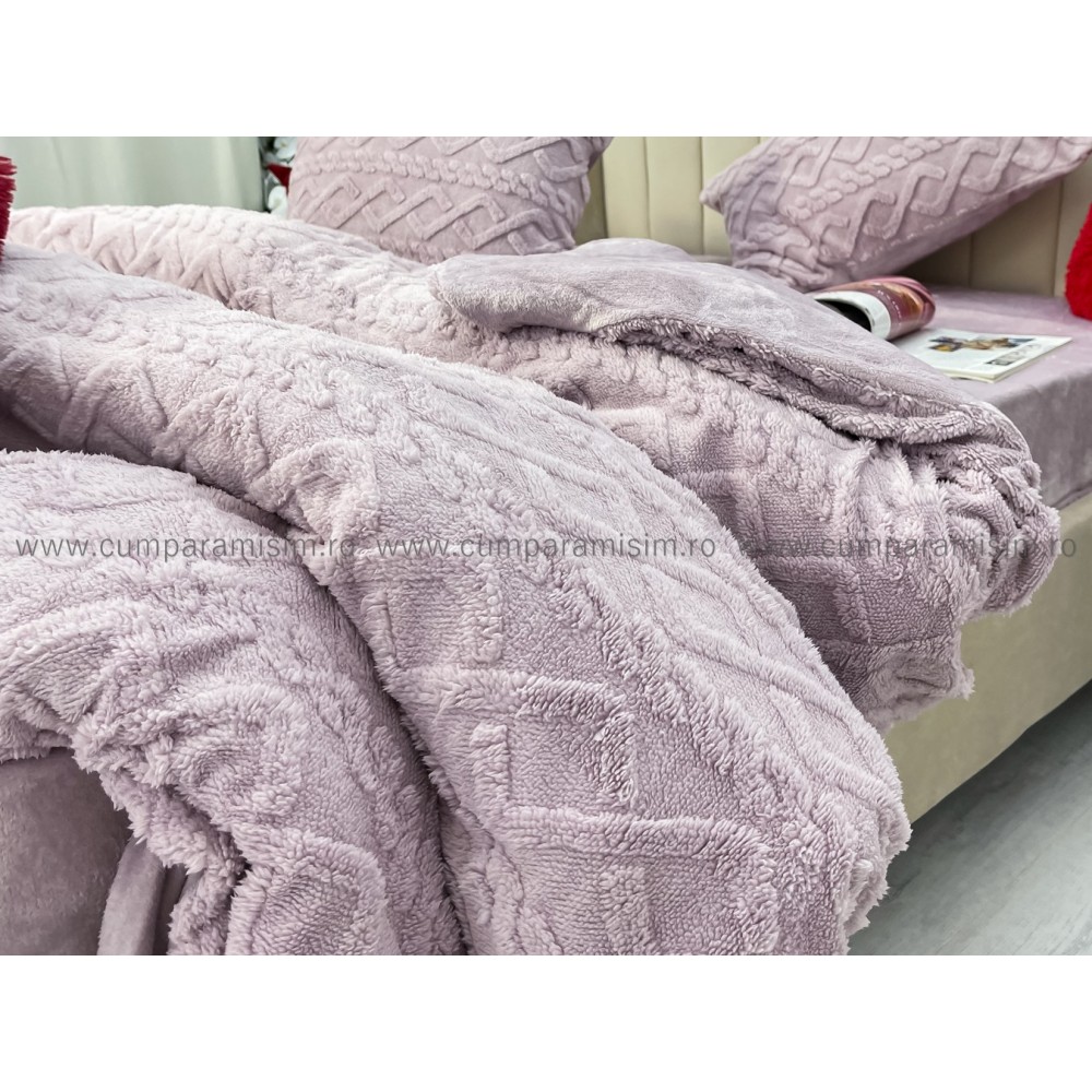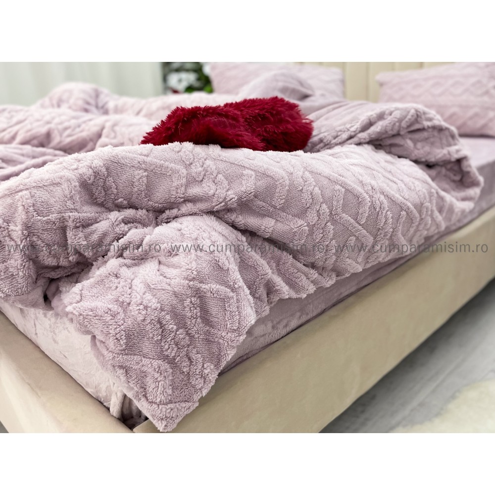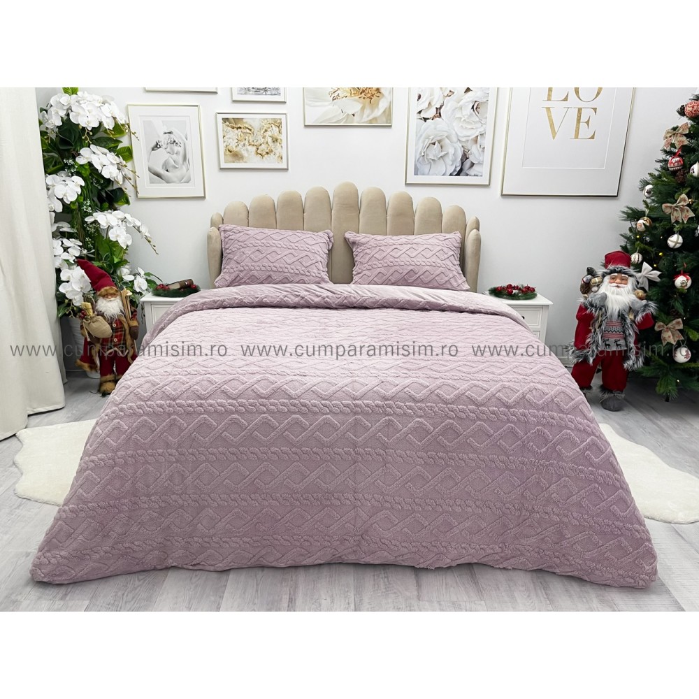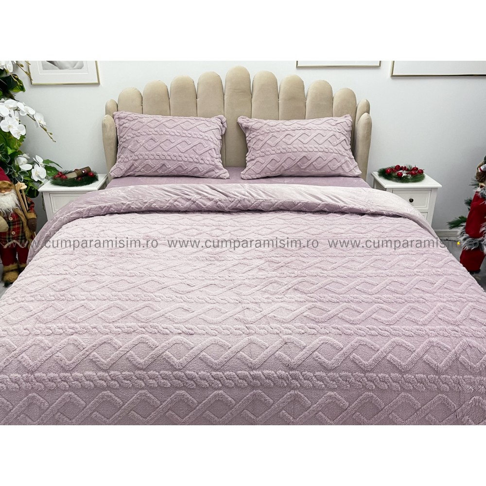 Lenjerie pentru pat dublu pufoasa CoCoLiNo, tip tricotaj, 4 piese, Lila, cod produs: EXP2
