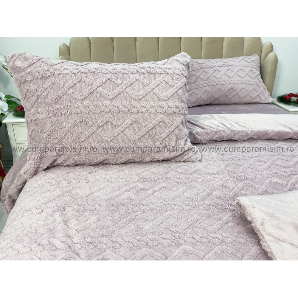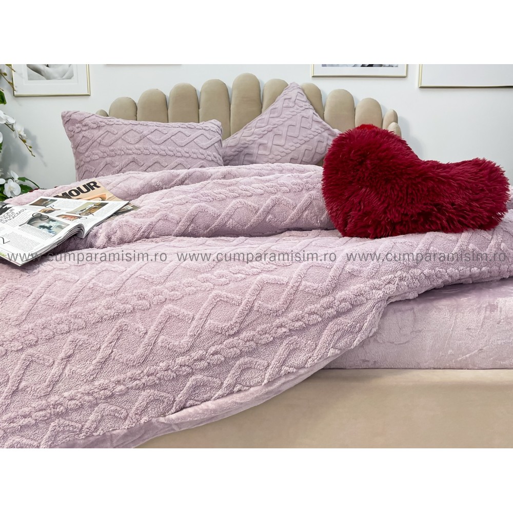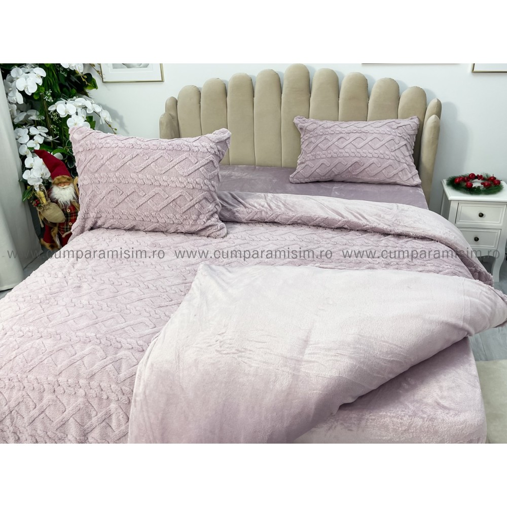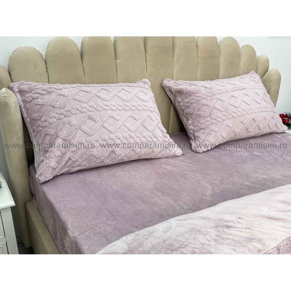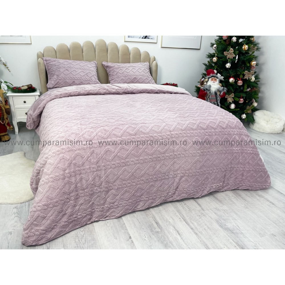 Lenjerie pentru pat dublu pufoasa CoCoLiNo, tip tricotaj, 4 piese, Lila, cod produs: EXP2