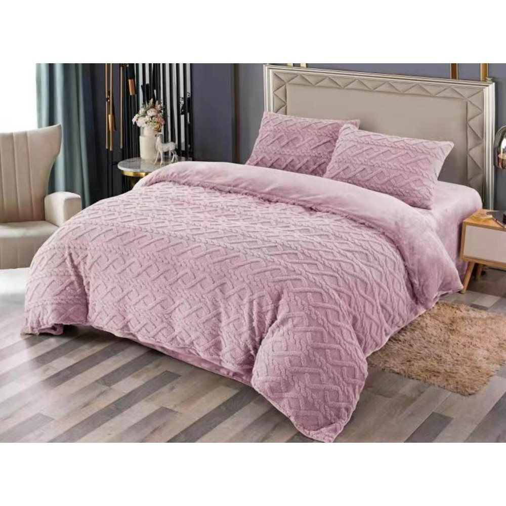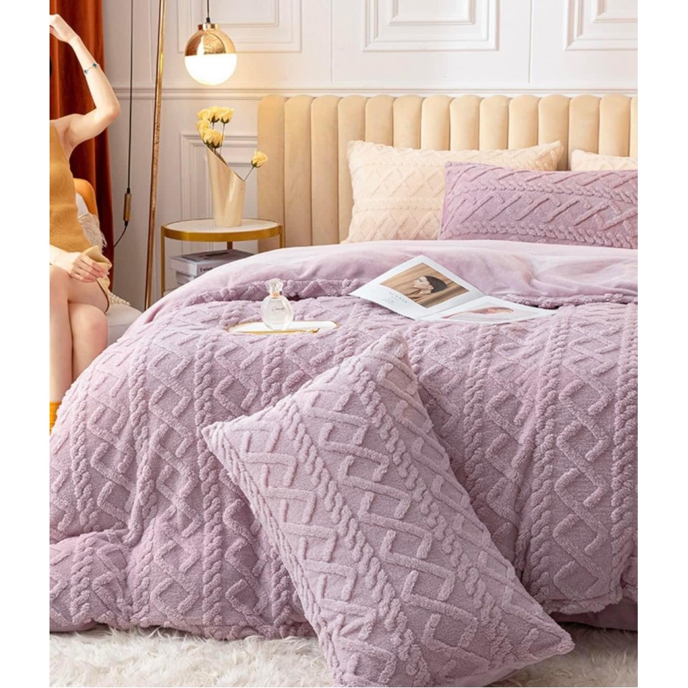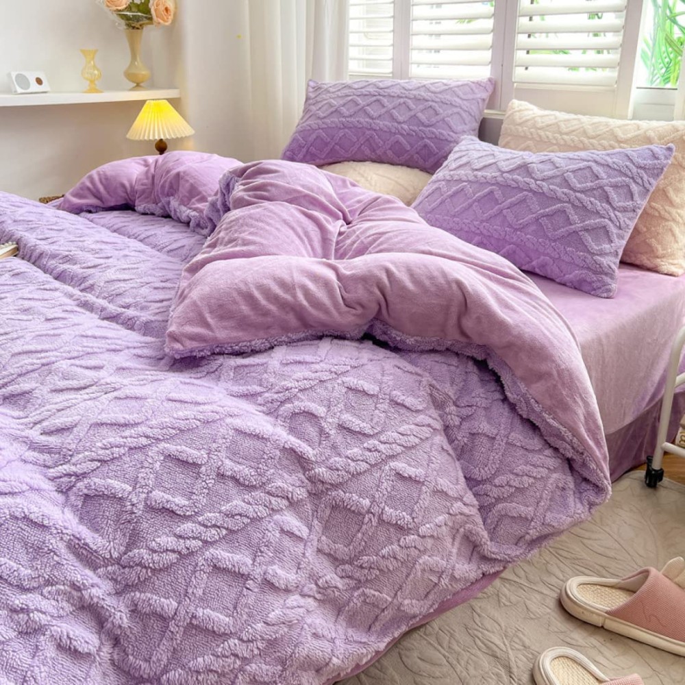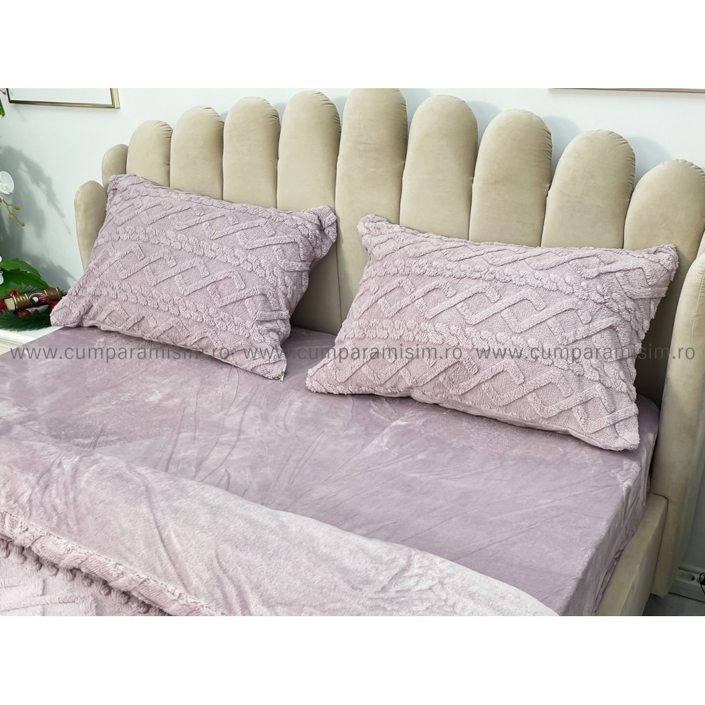 Lenjerie pentru pat dublu pufoasa CoCoLiNo, tip tricotaj, 4 piese, Lila, cod produs: EXP2