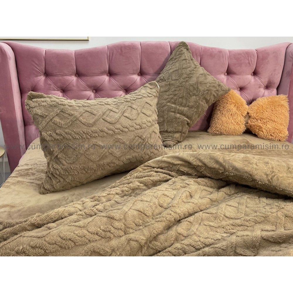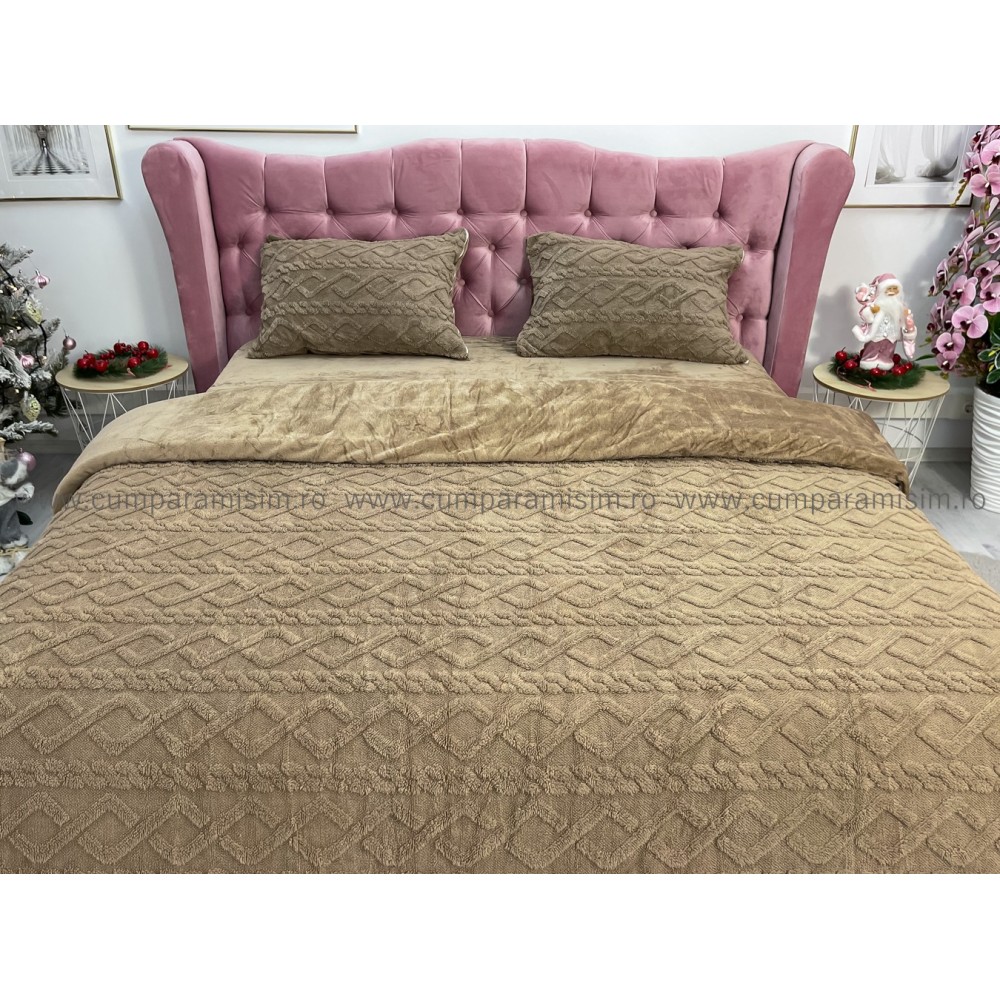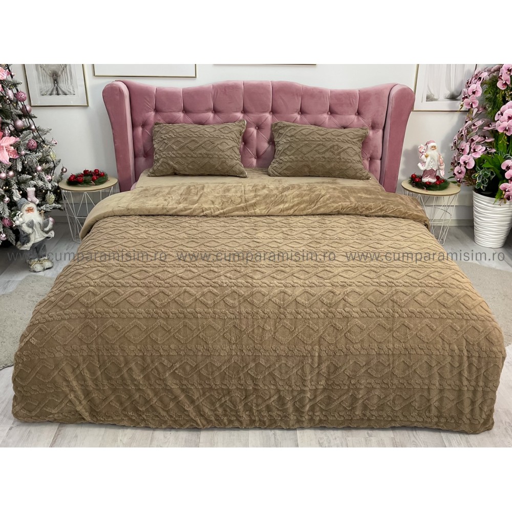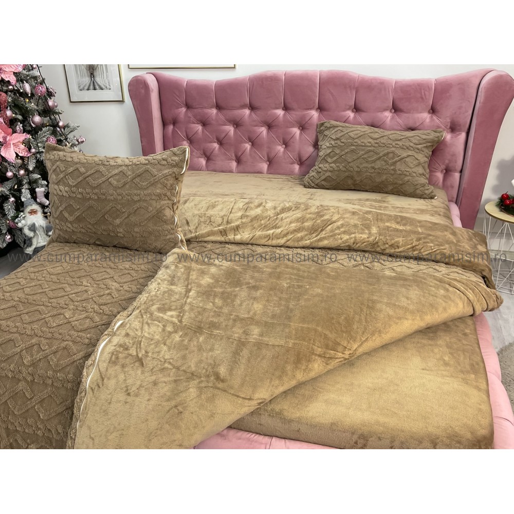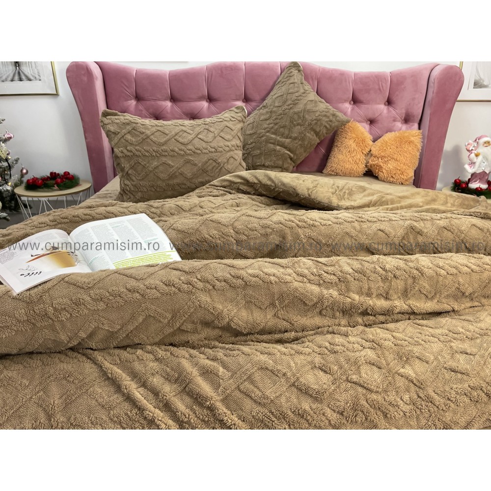 Lenjerie pentru pat dublu pufoasa CoCoLiNo, tip tricotaj, 4 piese, Maro, cod produs: EXP4
