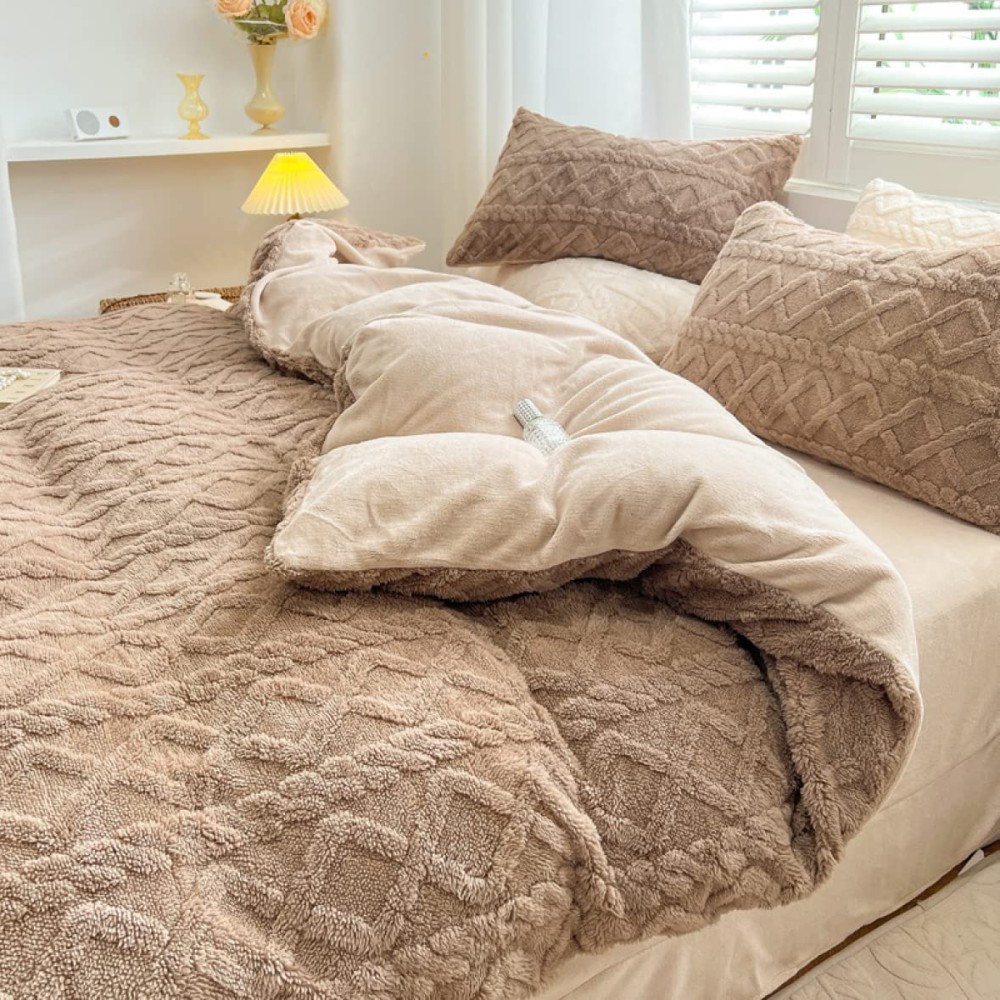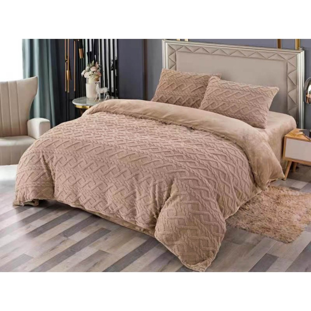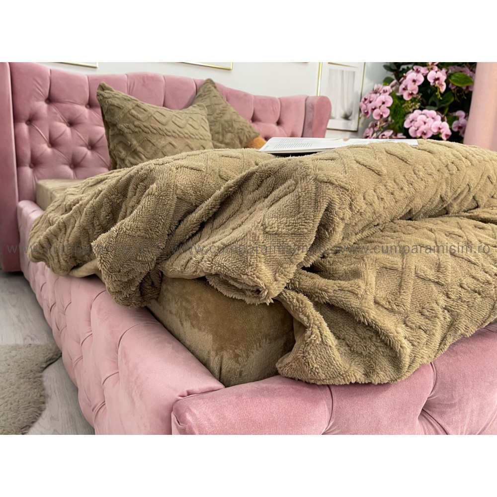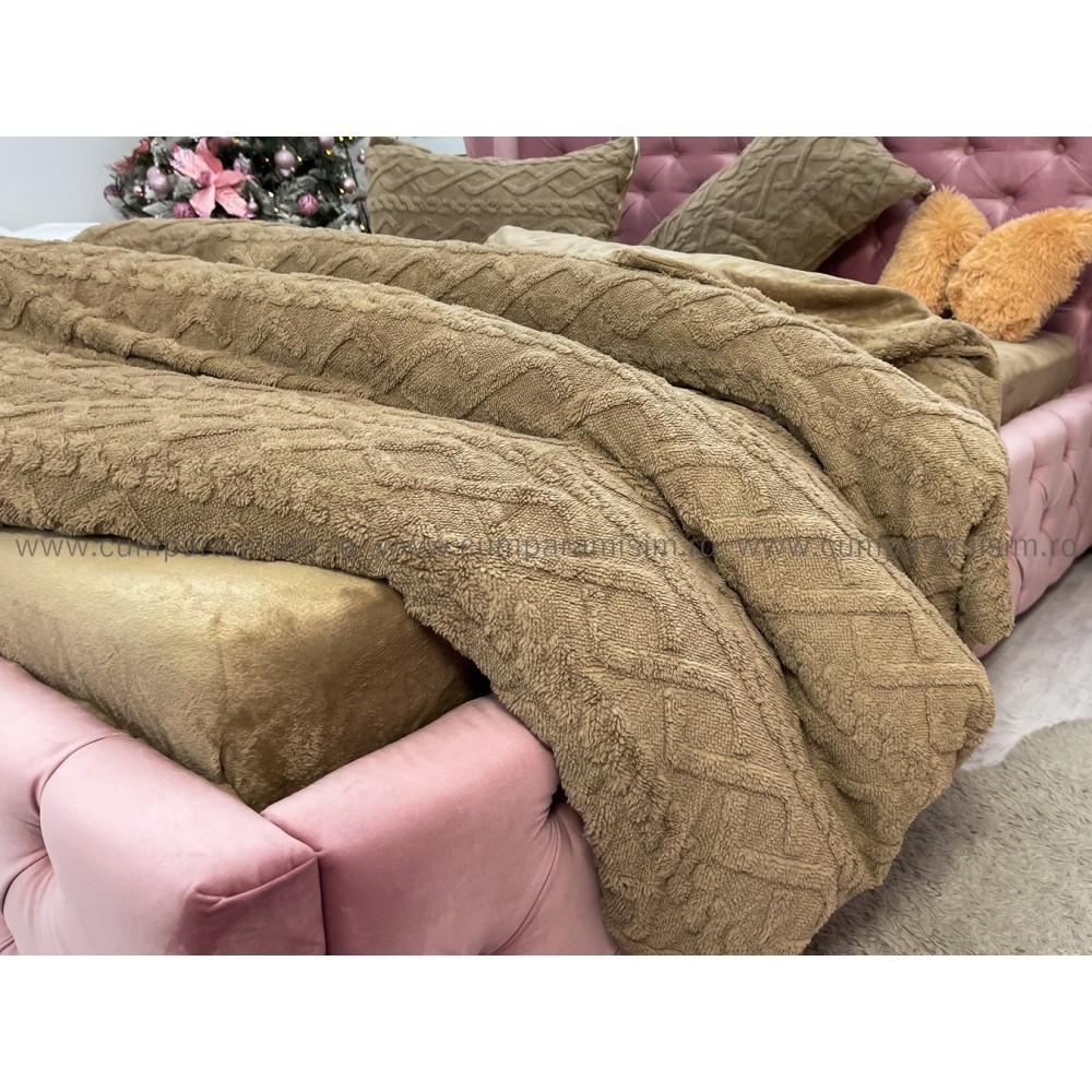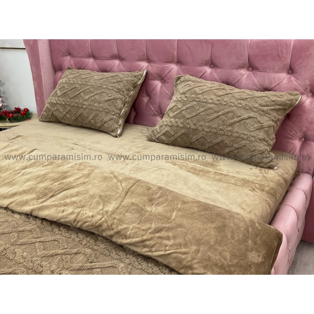 Lenjerie pentru pat dublu pufoasa CoCoLiNo, tip tricotaj, 4 piese, Maro, cod produs: EXP4