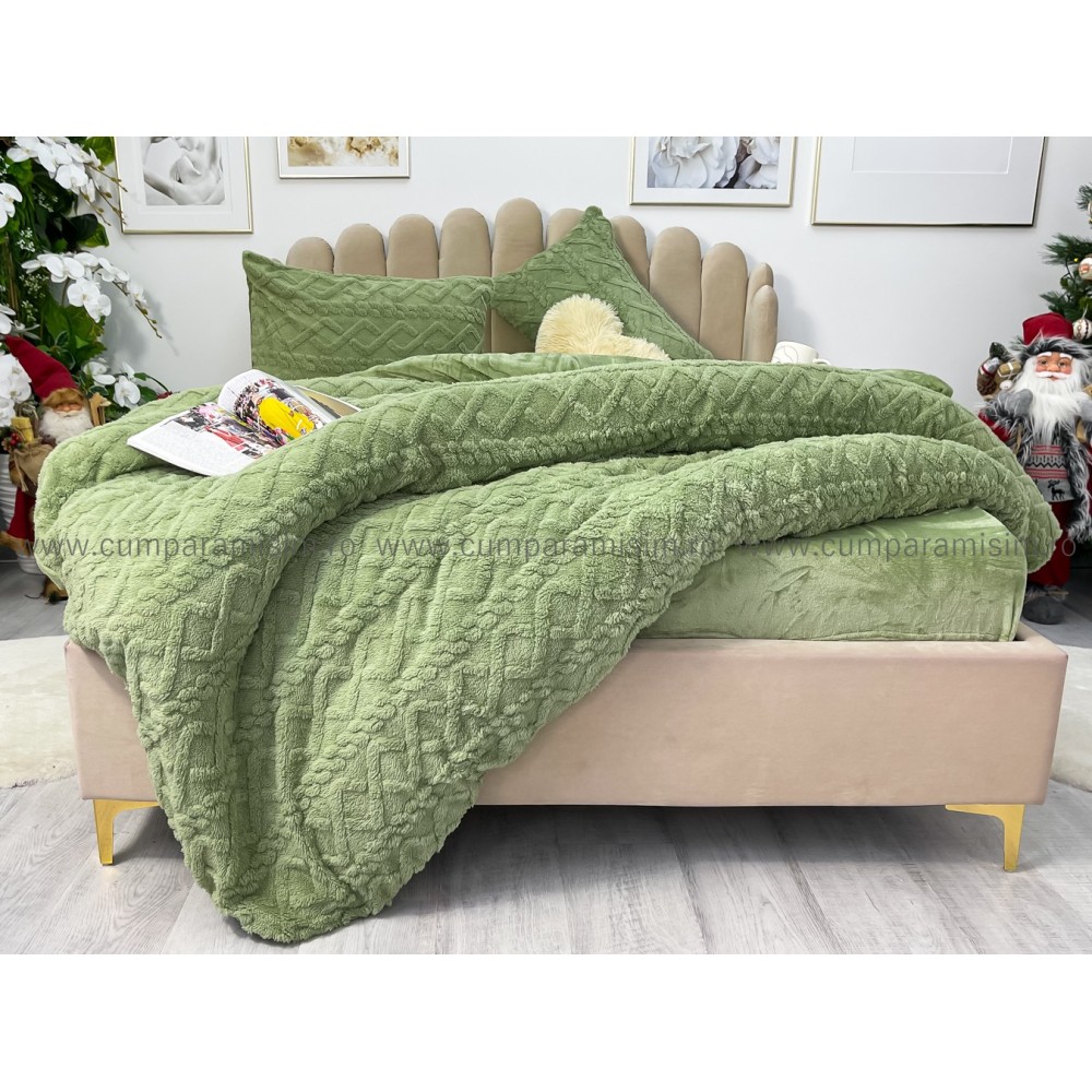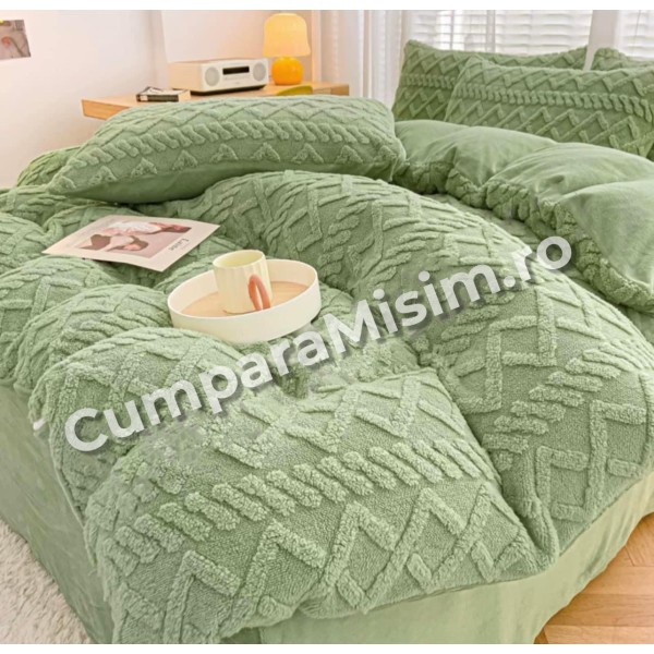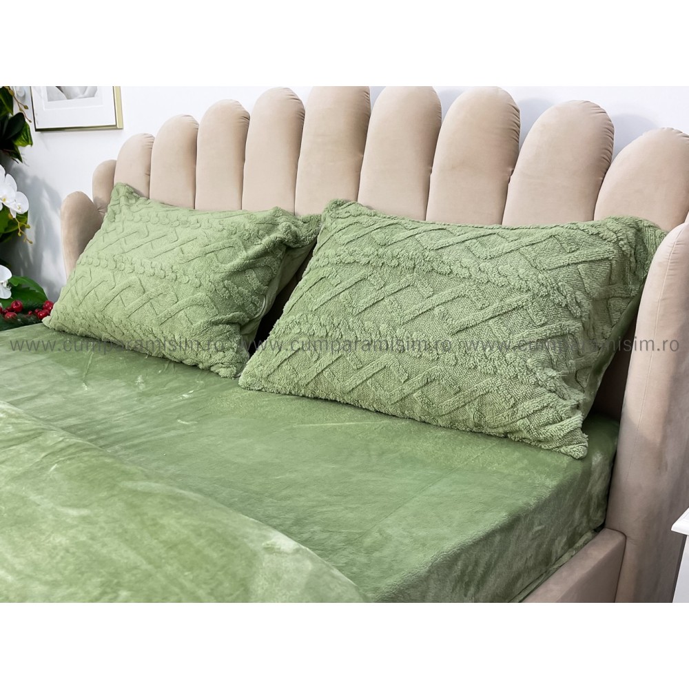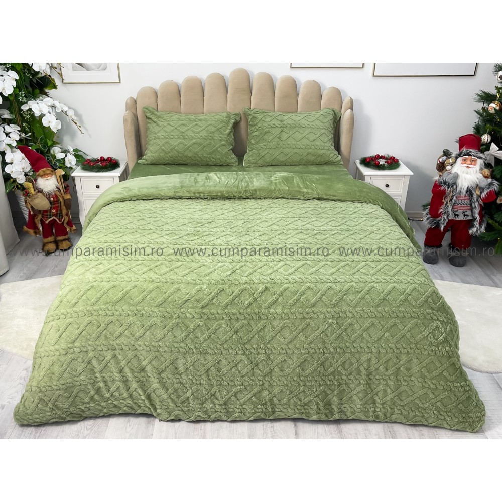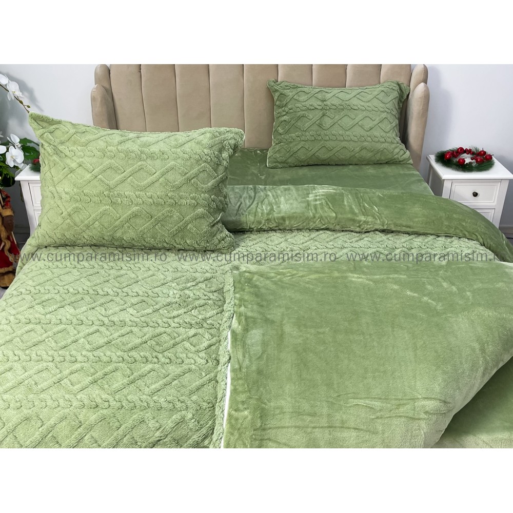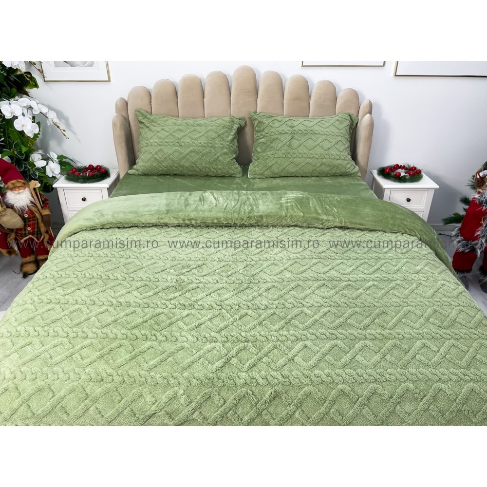 Lenjerie pentru pat dublu pufoasa CoCoLiNo, tip tricotaj, 4 piese, Verde, cod produs: EXP5