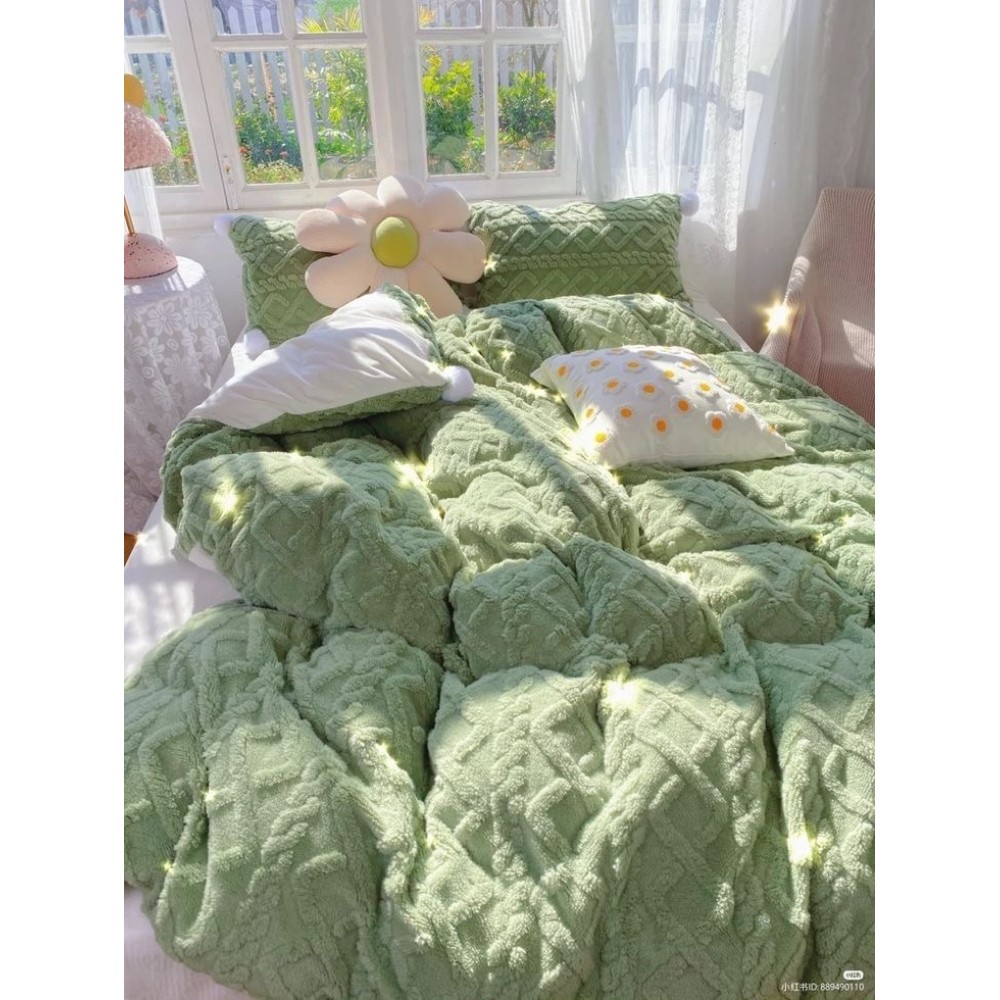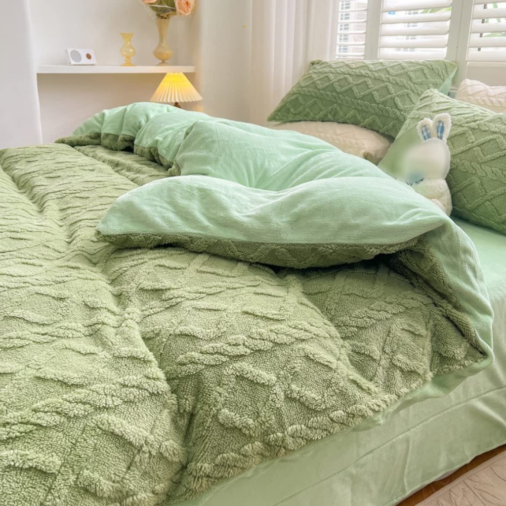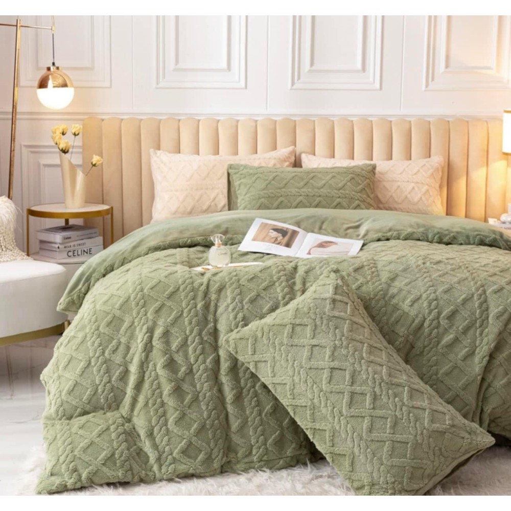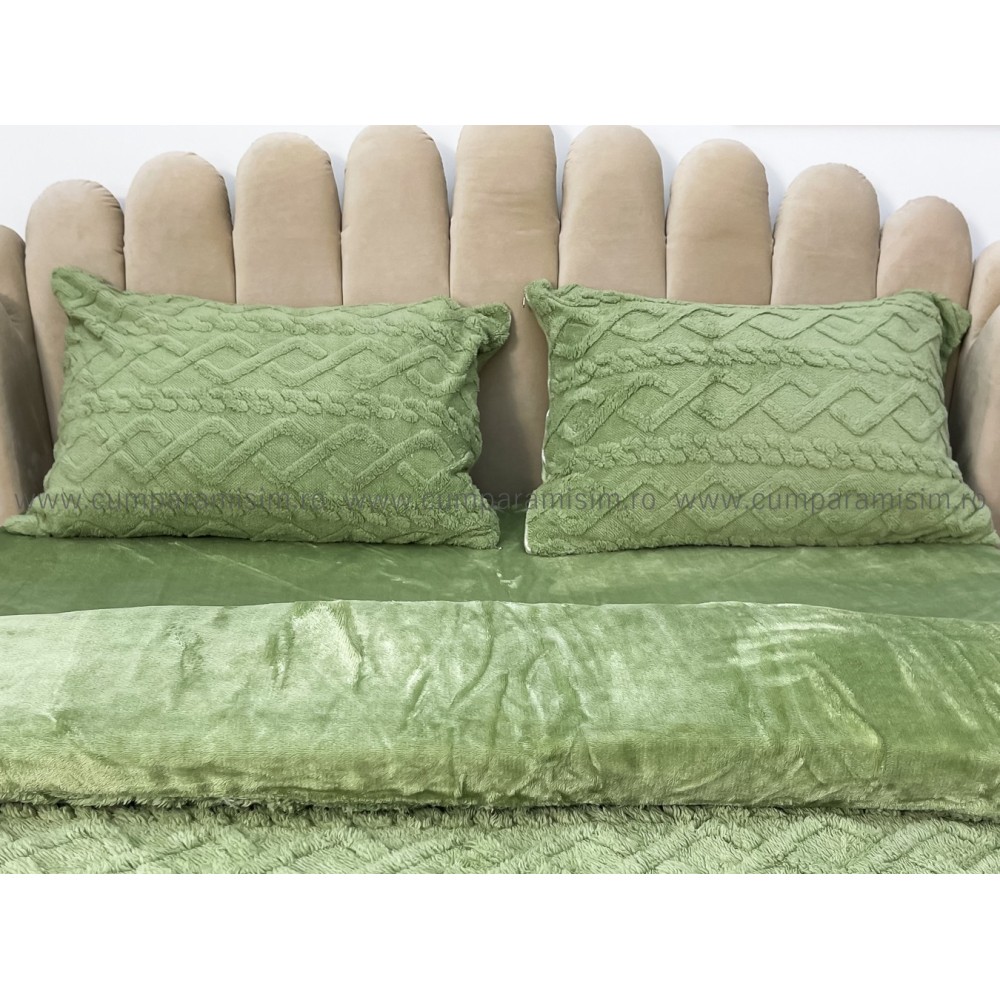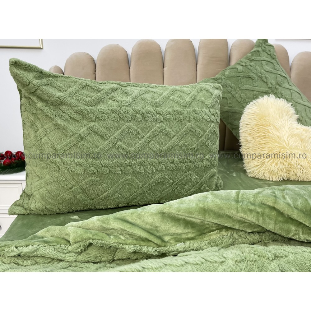 Lenjerie pentru pat dublu pufoasa CoCoLiNo, tip tricotaj, 4 piese, Verde, cod produs: EXP5