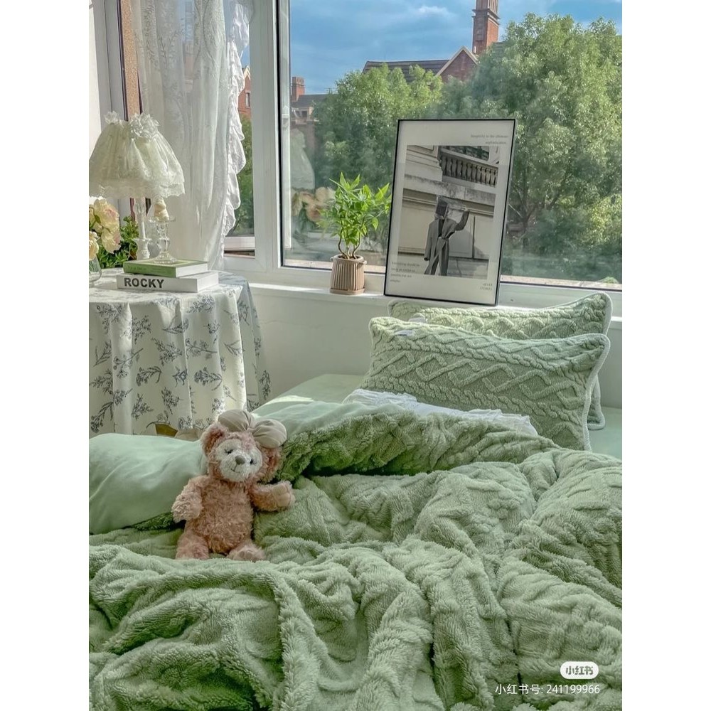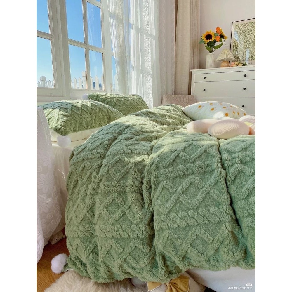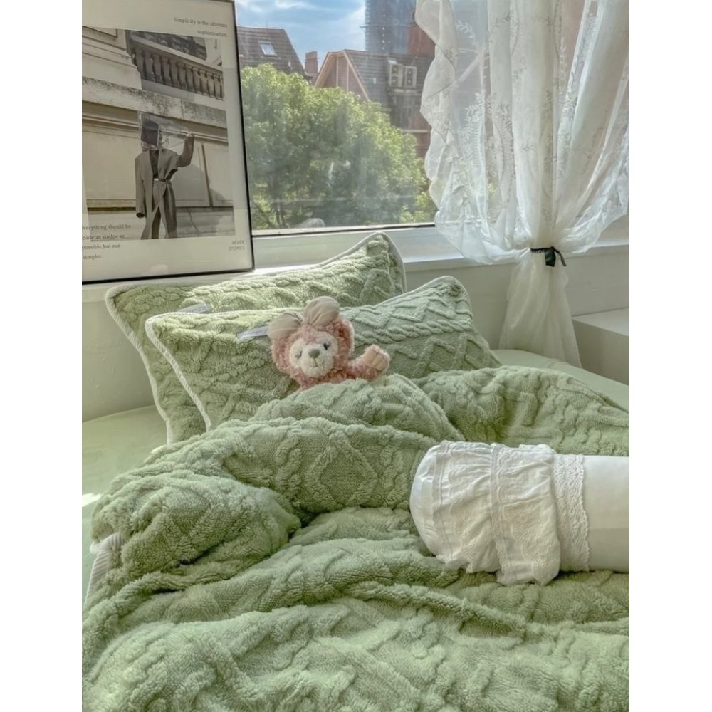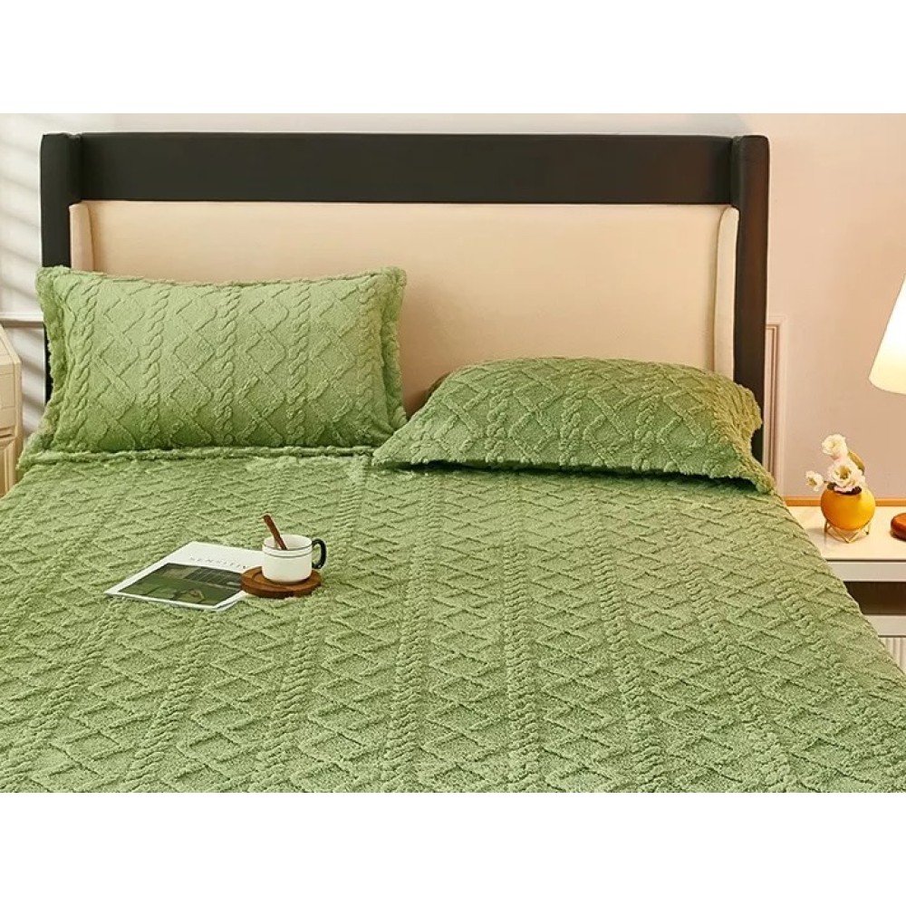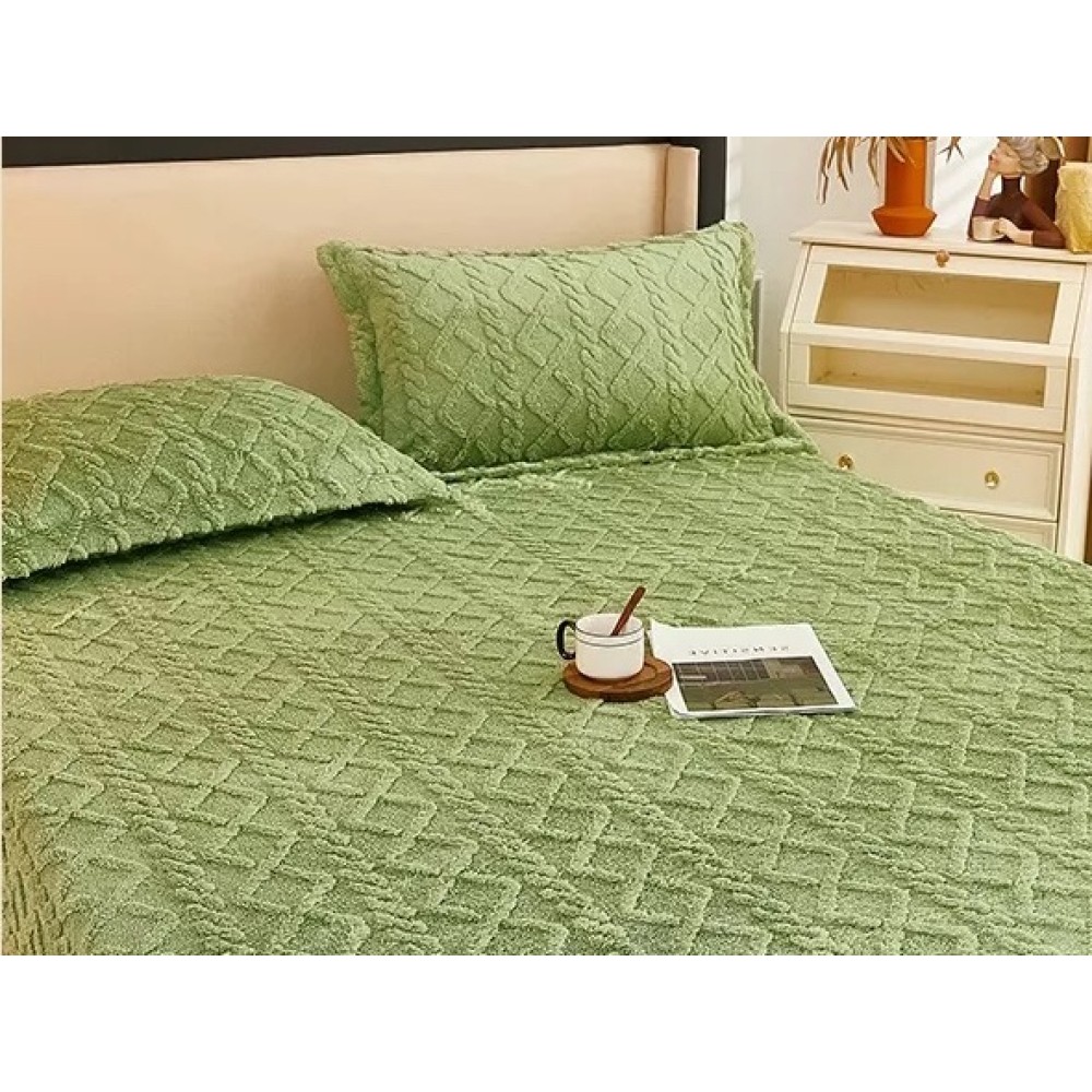 Lenjerie pentru pat dublu pufoasa CoCoLiNo, tip tricotaj, 4 piese, Verde, cod produs: EXP5