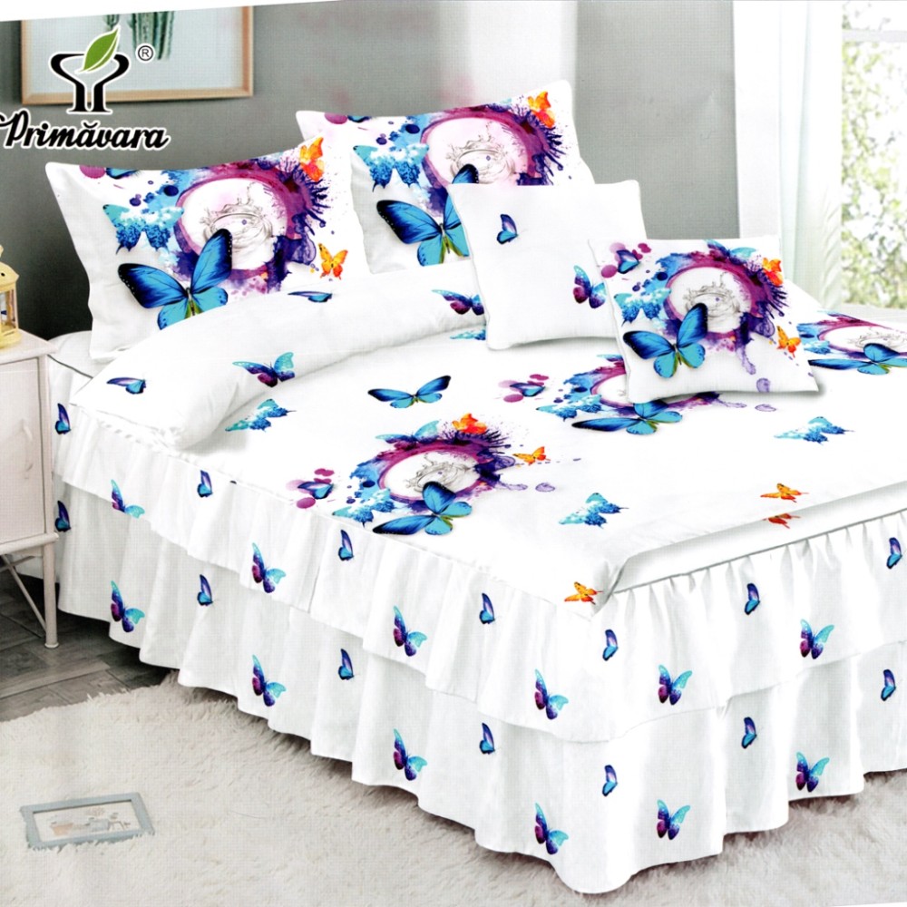 Lenjerie Premium Pat Dublu FINET, 6 Piese – Volănașe Sofisticate, Fixare Perfectă cu Elastic, Alb, Bleu, Mov, Fluturi, Primavara Casa, cod produs: PRM-K202