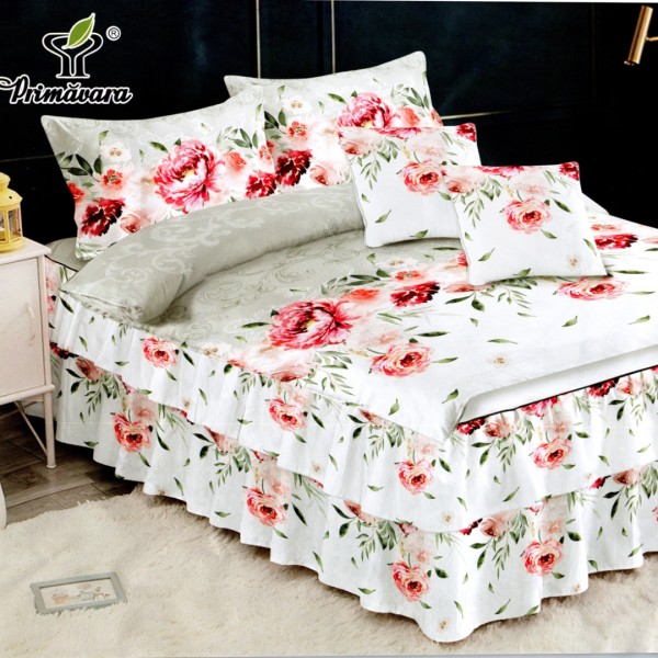 •  Combinația perfectă între confort, eleganță și funcționalitate! Designul modern cu volănașe aplicate în două rânduri, ușor încrețite, adaugă un plus de stil dormitorului tău, iar materialul finet asigură un somn plăcut și relaxant în fiecare noapte.