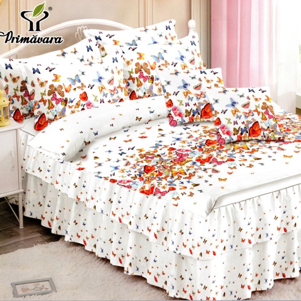 Lenjerie Premium Pat Dublu FINET, 6 Piese – Volănașe Sofisticate, Fixare Perfectă cu Elastic, Alb, Multicolor, Fluturi, Primavara Casa, cod produs: PRM-K65