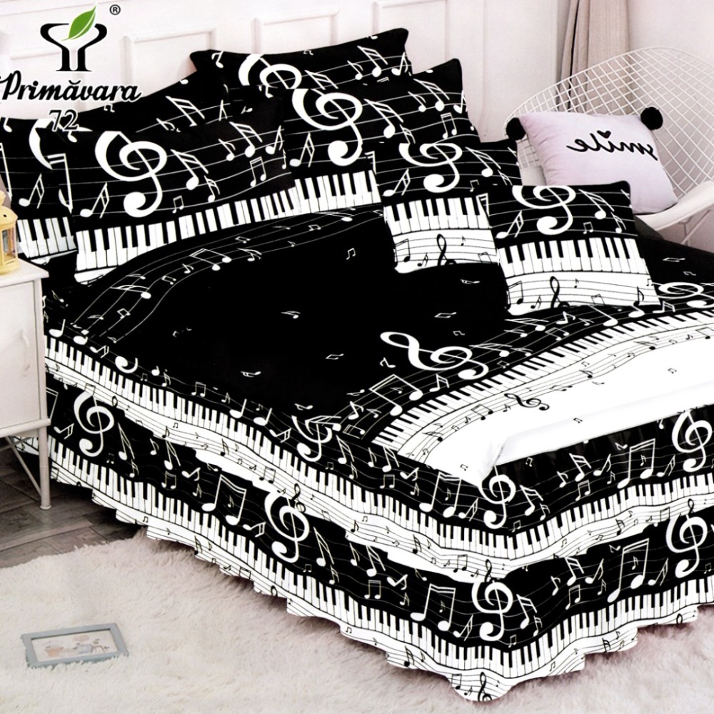 Lenjerie Premium Pat Dublu FINET, 6 Piese – Volănașe Sofisticate, Fixare Perfectă cu Elastic, Alb, Negru, Note Muzicale, Primavara Casa, cod produs: PRM-K72