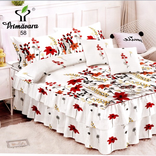 Lenjerie Premium Pat Dublu FINET, 6 Piese – Volănașe Sofisticate, Fixare Perfectă cu Elastic, Alb, Roșu, Flori, Primavara Casa, cod produs: PRM-K58