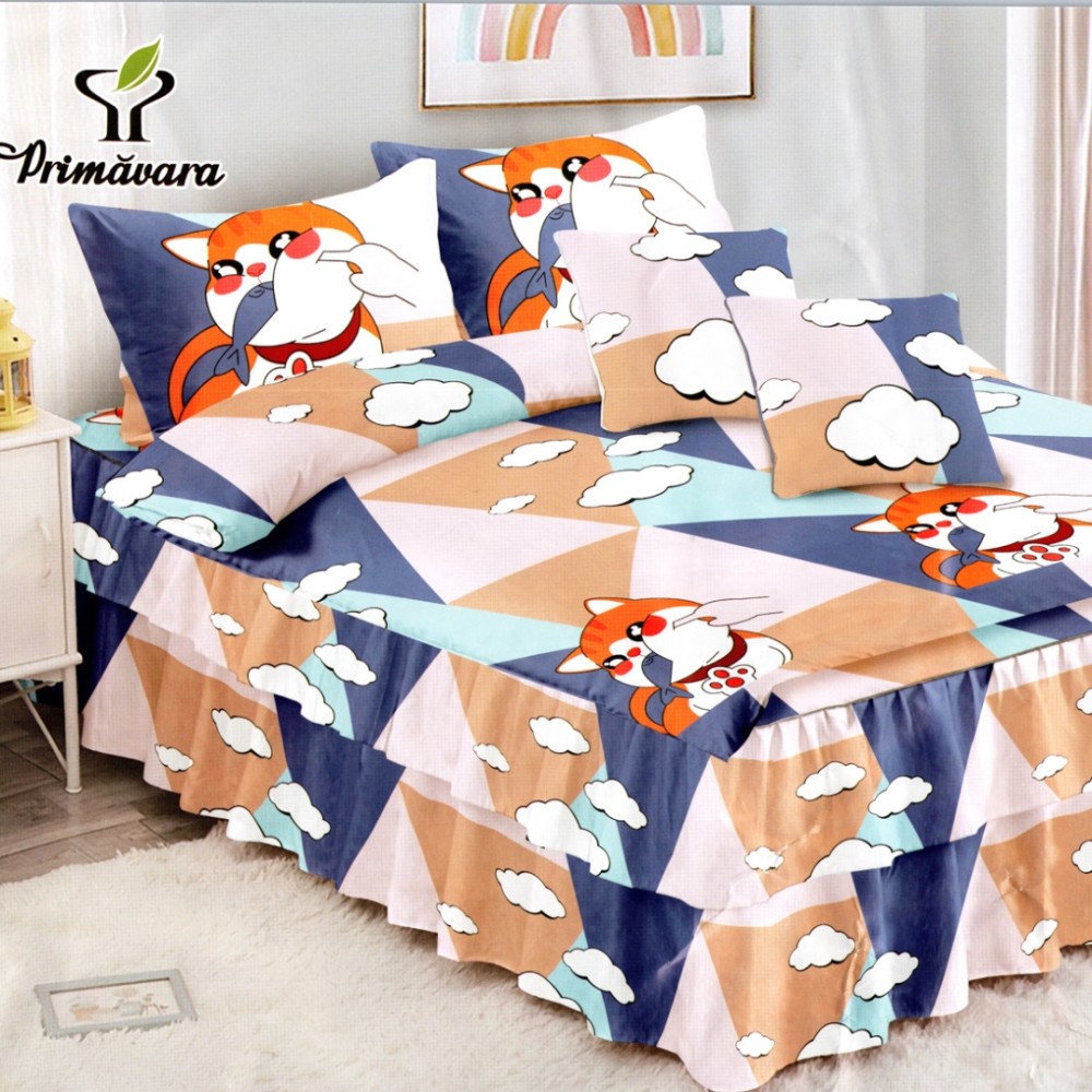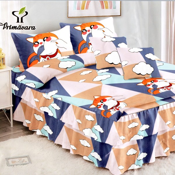Lenjerie Premium Pat Dublu FINET, 6 Piese – Volănașe Sofisticate, Fixare Perfectă cu Elastic, Bej, Albastru, Roz, Vulpițe, Forme Geometrice, Norisori, Primavara Casa, cod produs: PRM-K99
