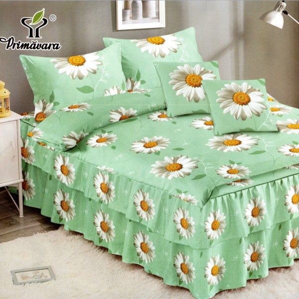 Lenjerie Premium Pat Dublu FINET, 6 Piese – Volănașe Sofisticate, Fixare Perfectă cu Elastic, Vernil, Margarete, Primavara Casa, cod produs: PRM-K078