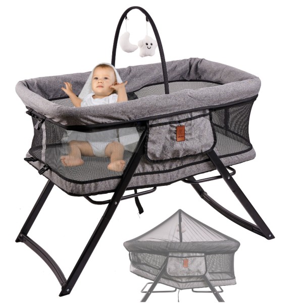 Plasă de țânțari atașabilă - care va proteja împotriva insectelor și va permite amplasarea pătuțului în exterior.