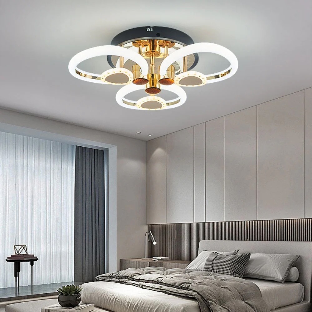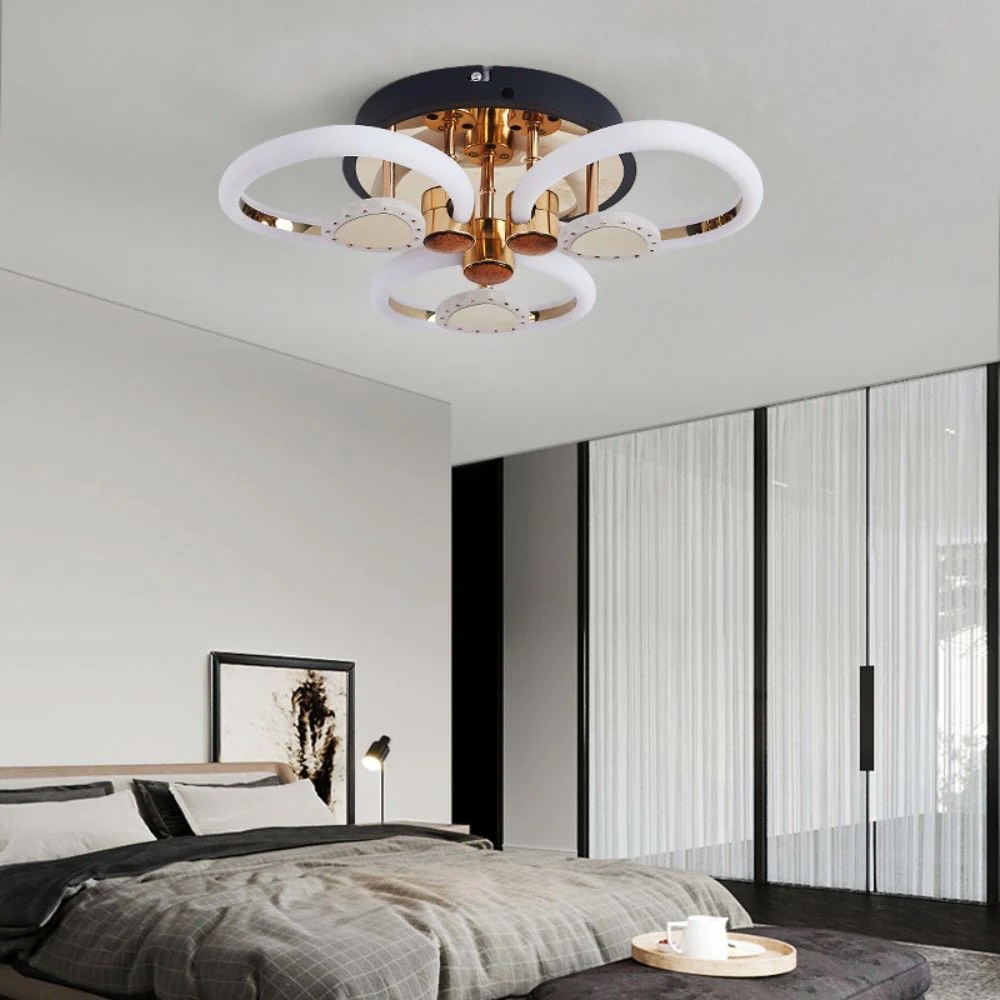 Lustra LED RFAN, Model 1009/3+3 G+BK, Cu Telecomanda, 3 Tipuri De Lumina, Intensitate Reglabila, Auriu, cod produs: RFN-1009/3+3 G+BK