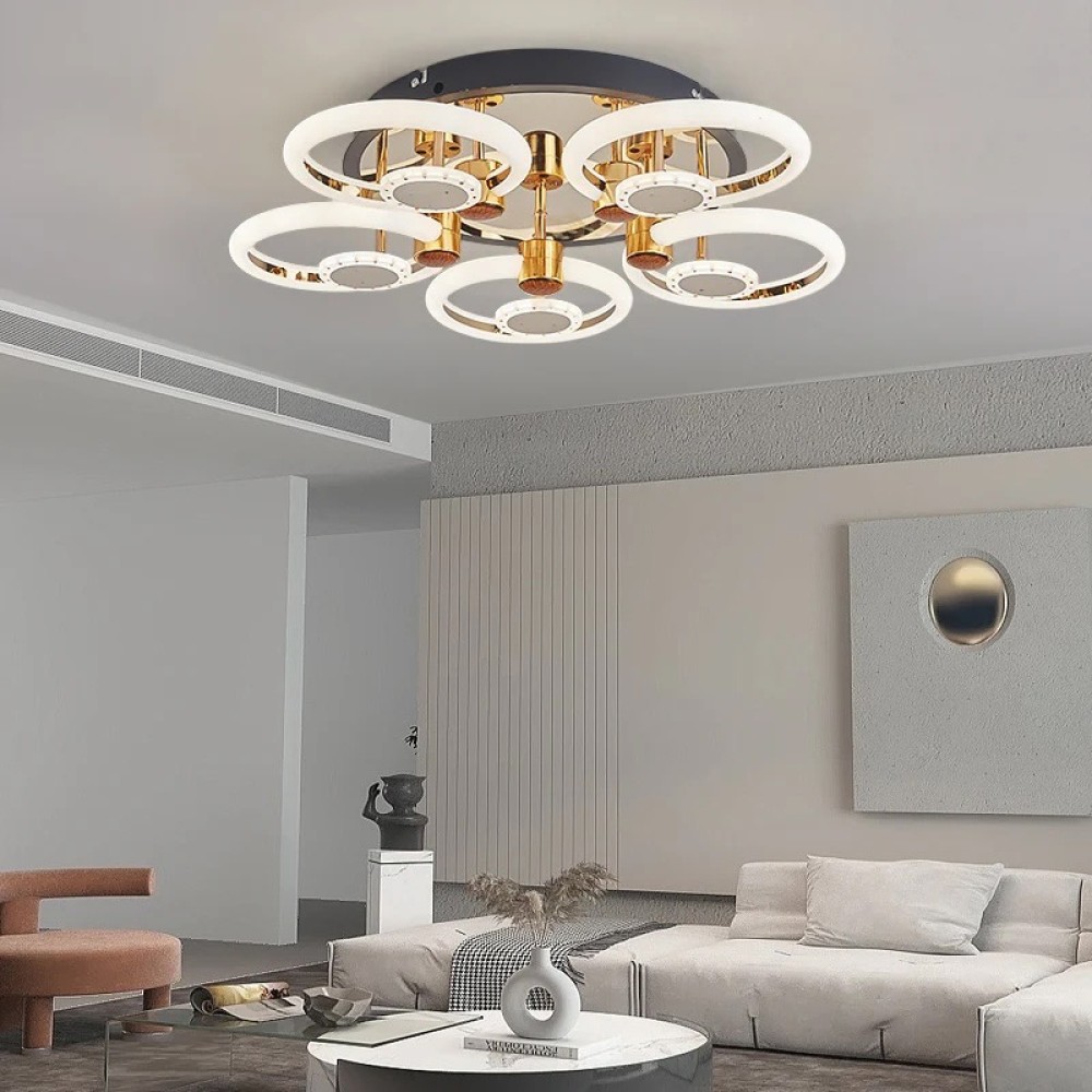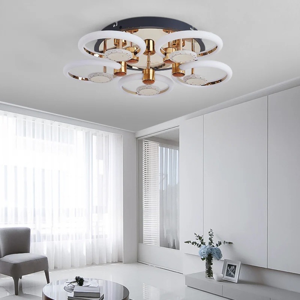 Lustra LED RFAN, Model 1010/5+5 G+BK, Cu Telecomanda, 3 Tipuri De Lumina, Intensitate Reglabila, Auriu, cod produs: RFN-1010/5+5 G+BK