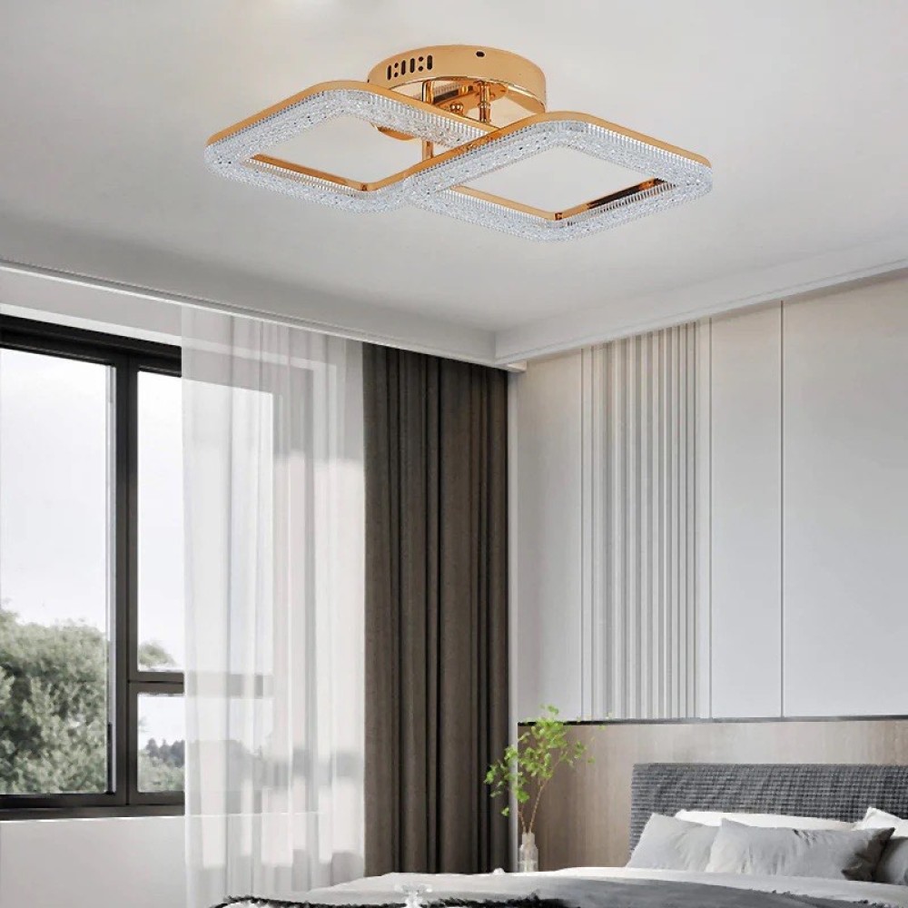 Lustra LED RFAN, Model J230/2, Cu Telecomanda, 3 Tipuri De Lumina, Intensitate Reglabila, 64W, Auriu, cod produs: RFN-J230/2