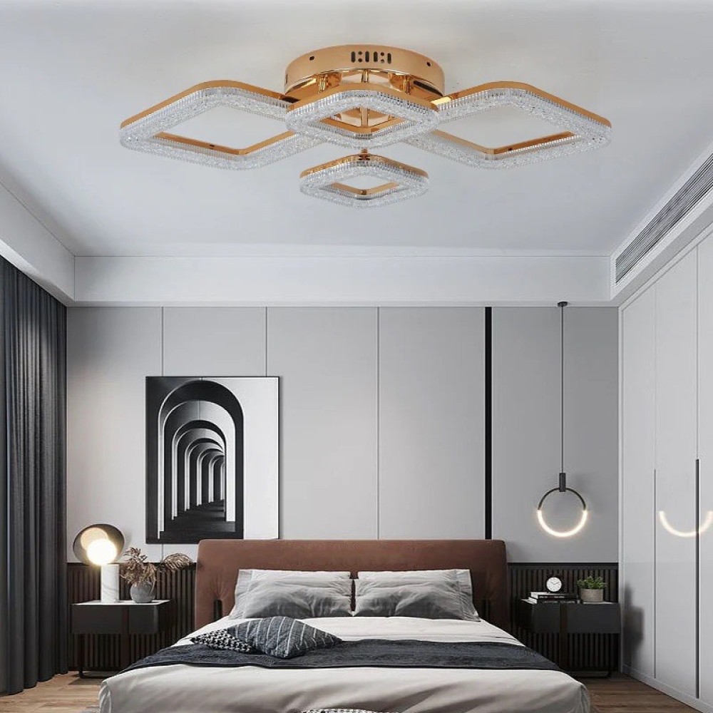 Lustra LED RFAN, Model J230/2+2, Cu Telecomanda, 3 Tipuri De Lumina, Intensitate Reglabila, 96W, Auriu, cod produs: RFN-J230/2+2