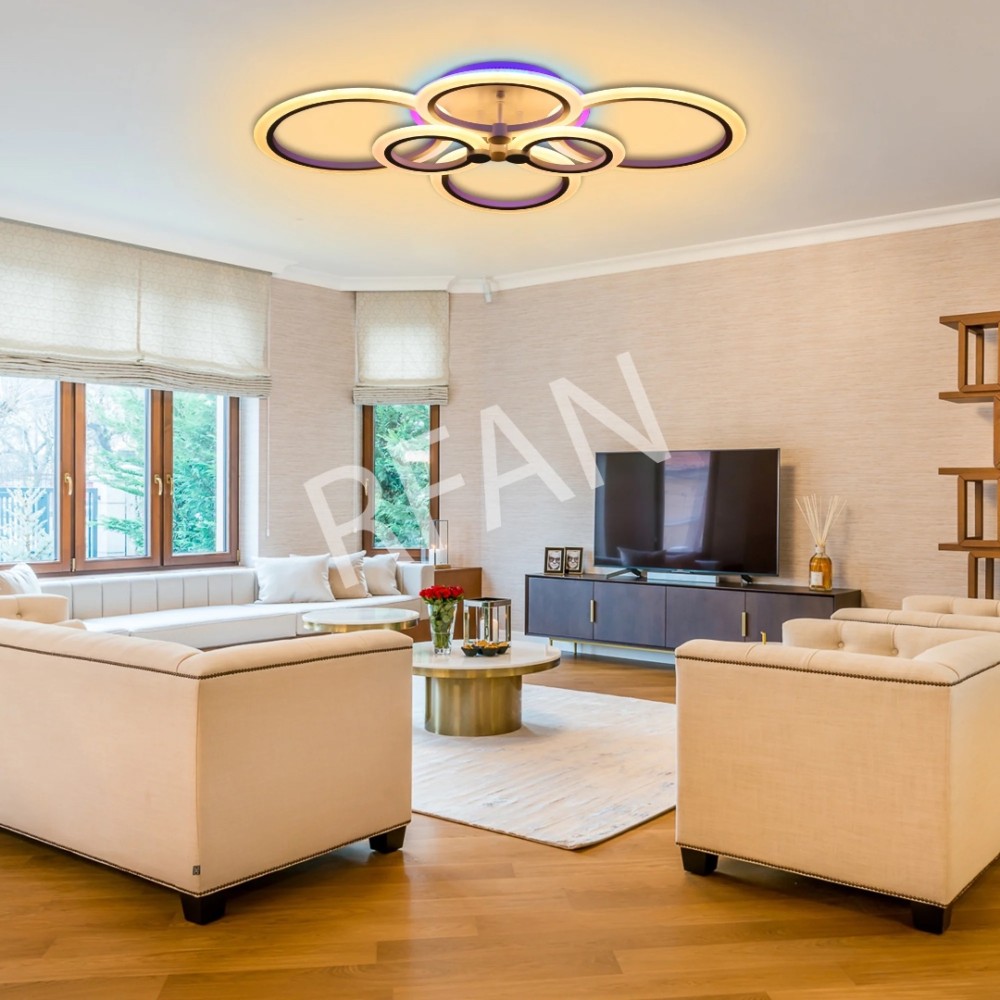 • Lustra LED RFAN 7 LED-uri cu telecomanda, 3 tipuri de lumina plus lumina RGB, intensitate reglabila.