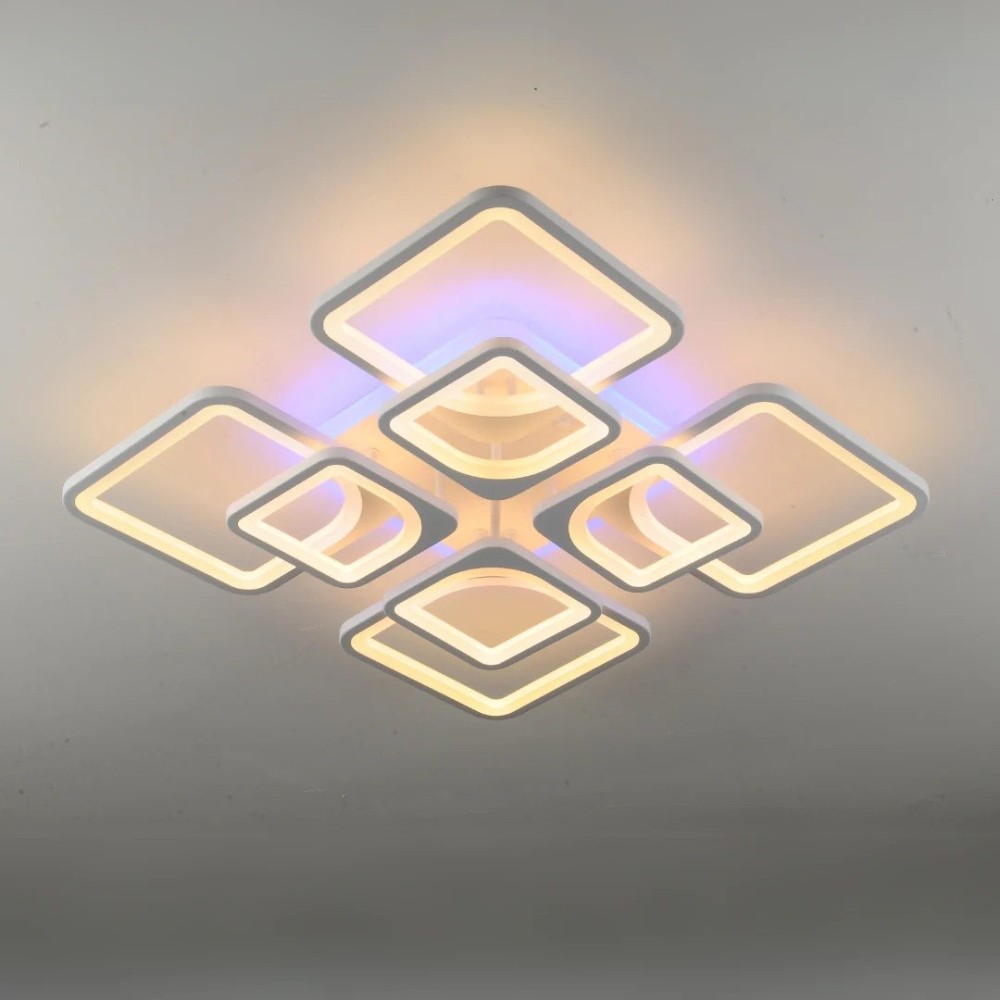 Lustra LED RFAN, Model K52/8RGB, Cu Telecomanda, 3 Tipuri De Lumina Plus Lumina RGB, Intensitate Reglabila, 276W, Alb, cod produs: RFN-K52/8RGB