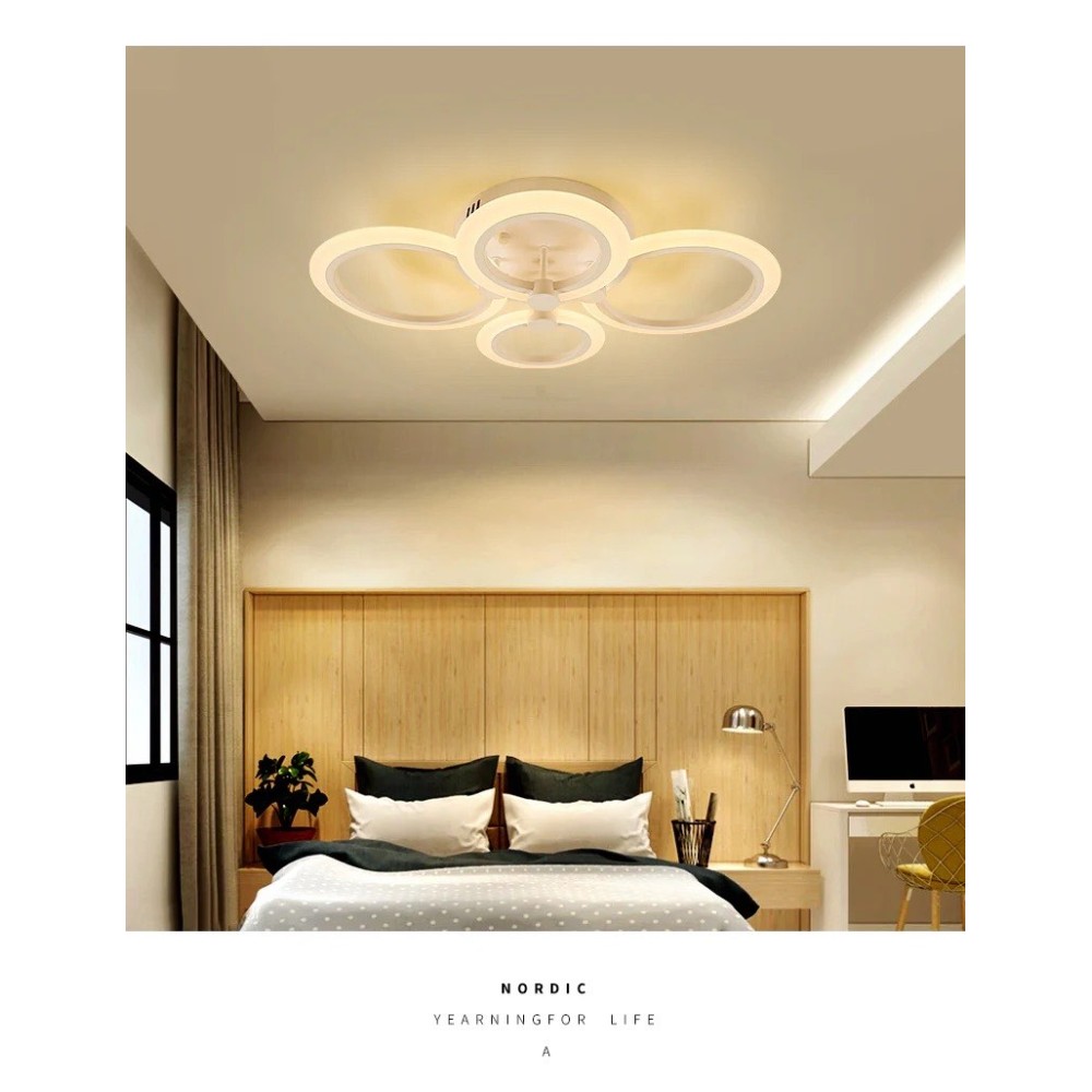 Lustra LED RFAN, Model M003-4, Cu Telecomanda, 3 Tipuri De Lumina, Intensitate Reglabila, 80W, Alb, cod produs: RFN-M003-4