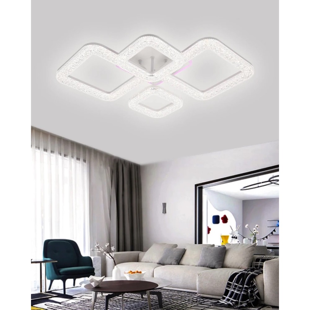 Lustra LED RFAN, Model R9133/2+2C, Cu Telecomanda, 3 Tipuri De Lumina Plus Lumina RGB, Intensitate Reglabila, 67W, Alb, cod produs: RFN-R9133/2+2C