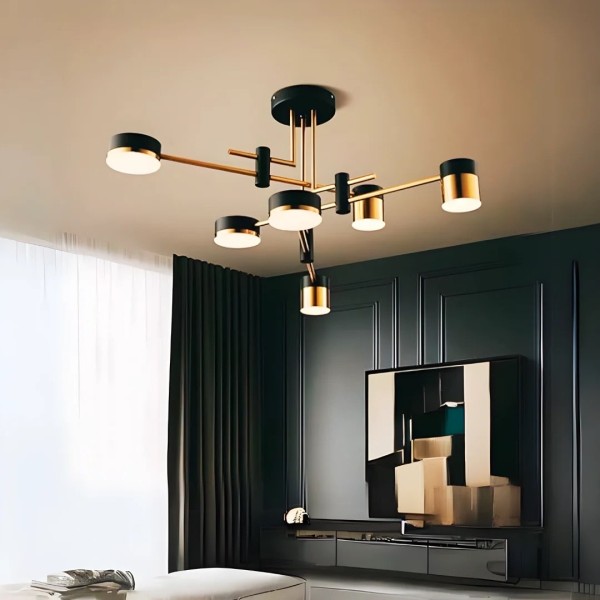 Lustra LED RFAN, Model X21014/3+3, Cu Telecomanda, 3 Tipuri De Lumina, Intensitate Reglabila, 55W, Negru/Auriu, cod produs: RFN-X21014/3+3
