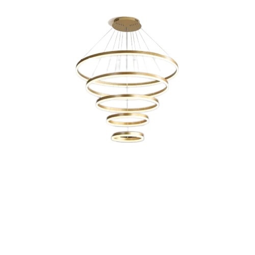 Lustra LED Tip Pendul RFAN, Model F315/5, Cu Telecomanda, 3 Tipuri De Lumina, Inaltime Reglabila, 372W, Auriu, cod produs: RFN-F315/5