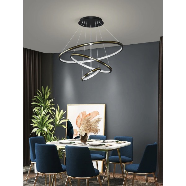 Lustra LED Tip Pendul RFAN, Model R9071/3, Cu Telecomanda, 3 Tipuri De Lumina, Inaltime Reglabila, 148W, Negru/Auriu, cod produs: RFN-R9071/3