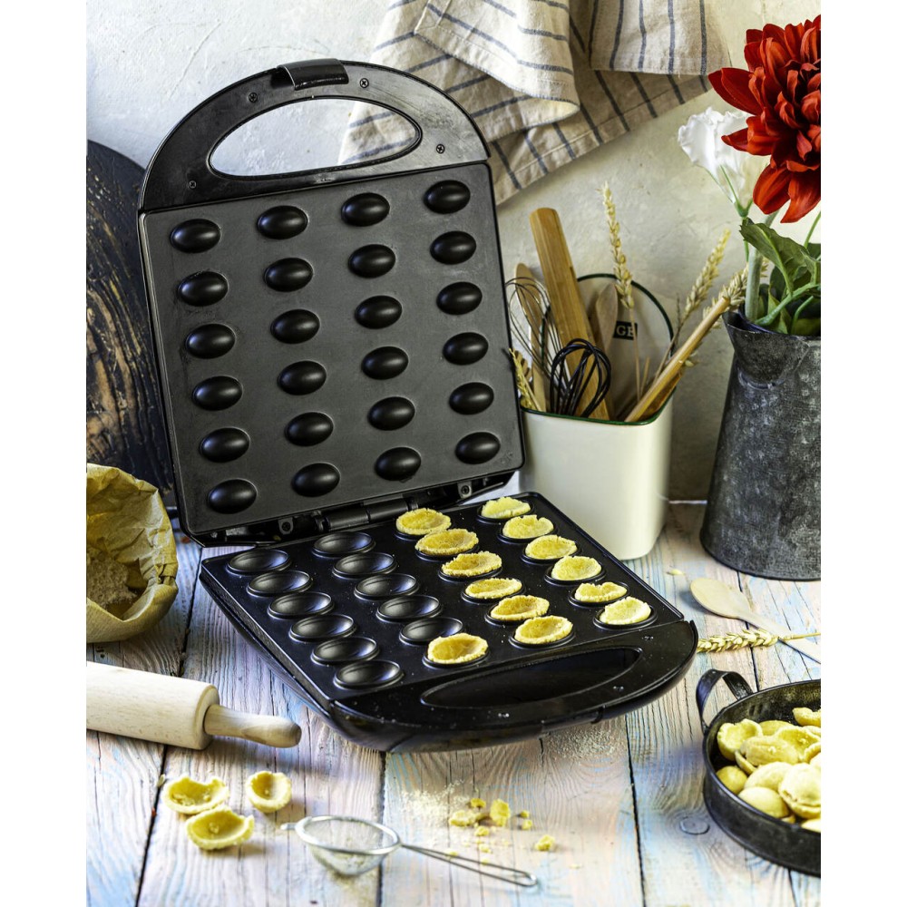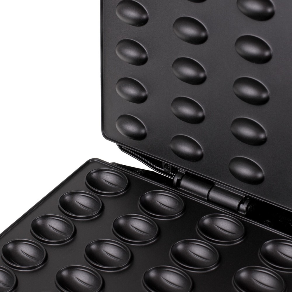 O rețetă de nuci pecan poate fi găsită în majoritatea caselor și, cu siguranță, aproape toată lumea a avut ocazia să încerce această delicatesă cel puțin o dată în viață. Dacă nu, acum este momentul perfect pentru a schimba acest lucru! Aparatul nostru de prăjituri cu nuci pecan umplute cu cremă vă va permite să pregătiți rapid 24 de jumătăți cu un singur ciclu de prăjire. Important este faptul că nucile sunt destul de mari, astfel încât vă puteți bucura de 24 de fursecuri pe care le puteți umple imediat cu cremă dulce sau sărată. Puterea maximă a aparatului este de 1600 de wați. Datorită acesteia, un ciclu de coacere durează doar 2 minute. Această caracteristică va fi utilă atunci când aveți musafiri neanunțați în vizită și doriți să îi surprindeți cu o prăjitură de casă. Tot ce trebuie să faci este să pregătești prăjitura, crema și vei străluci ca un geniu culinar în doar câteva momente!