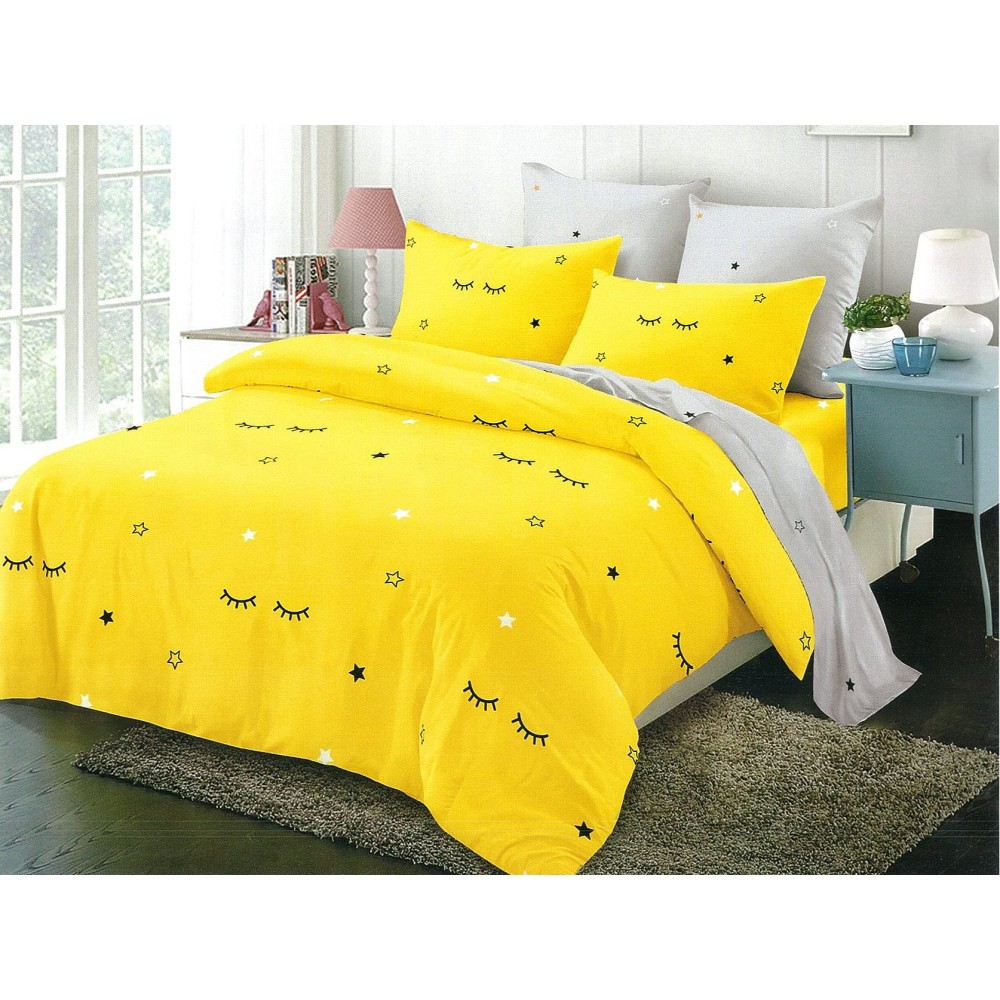 Lenjerie pat dublu, FINET, 6 piese, Galben-Negru, gene, stelute, Primavara Casa, cod produs: PRi138