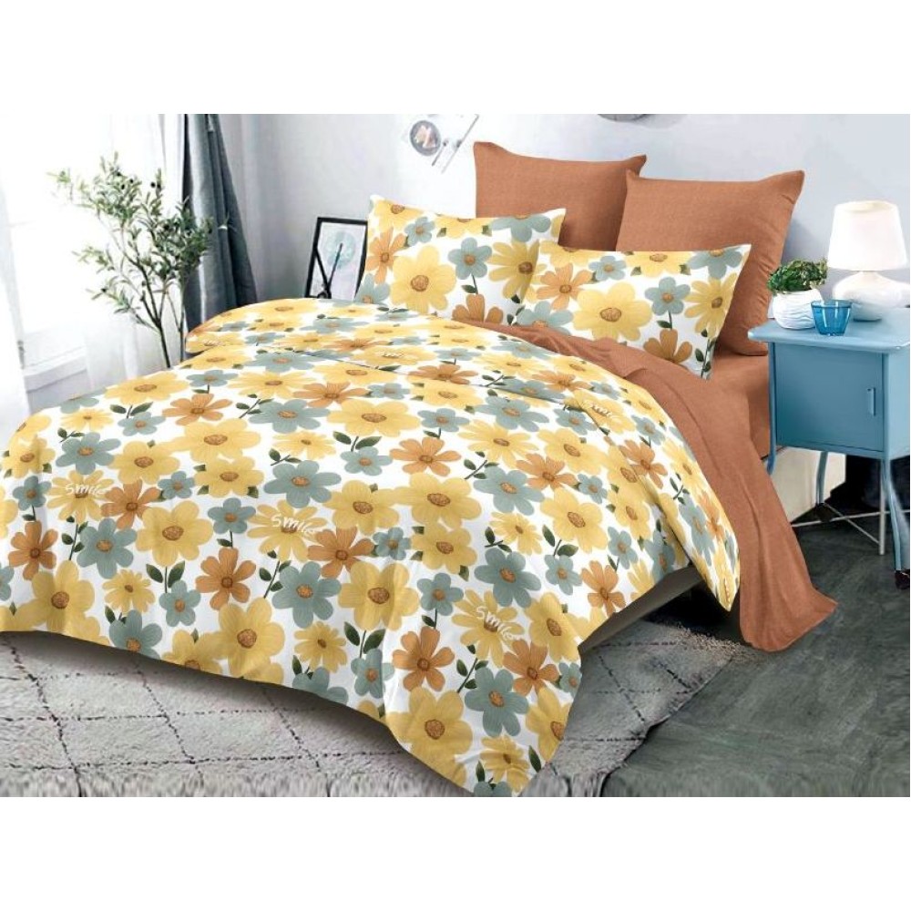 Lenjerie pat dublu, FINET, cu elastic, 6 piese, Bej-Maro, flori, Primavara Casa, cod produs: CFE133