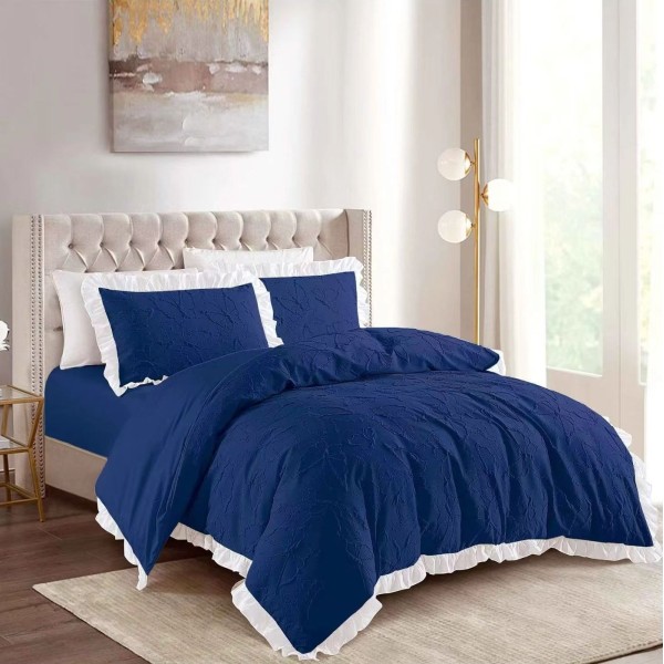 Lenjerie pat dublu, FINET, cu Broderie si Volanase, 4 piese, cu Elastic, albastru intens, Primavara Casa, cod produs: PRC20