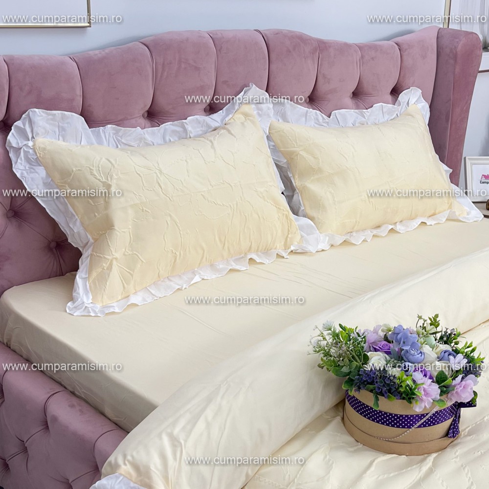 Lenjeriile cu broderii si volanase sunt in tendinte anul acesta. Iti recomandam cu incredere o lenjerie din aceasta gama luxurianta ce cu siguranta va imbraca de minune patul tau!