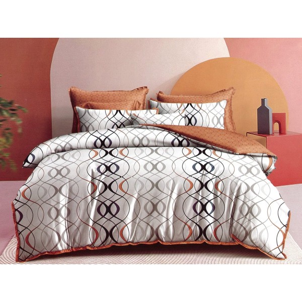 Lenjerie pat dublu, Ralex Pucioasa, Finet, 6 piese, cu elastic, Gri-Maro, abstract, cod produs: RXF572