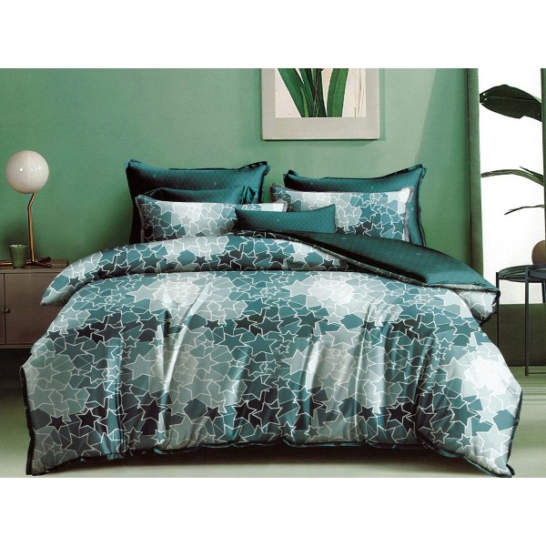 Lenjerie pat dublu, Ralex Pucioasa, Finet, 6 piese, cu elastic, Turquoise, stelute, cod produs: RXF575