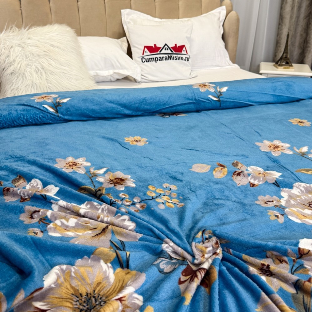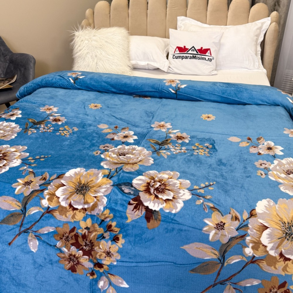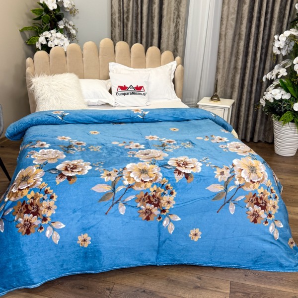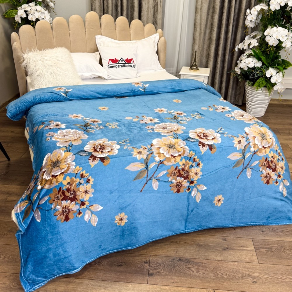 Patura CoCoLiNo, 195x210cm, Albastru, flori, cod produs: CSA-PT16