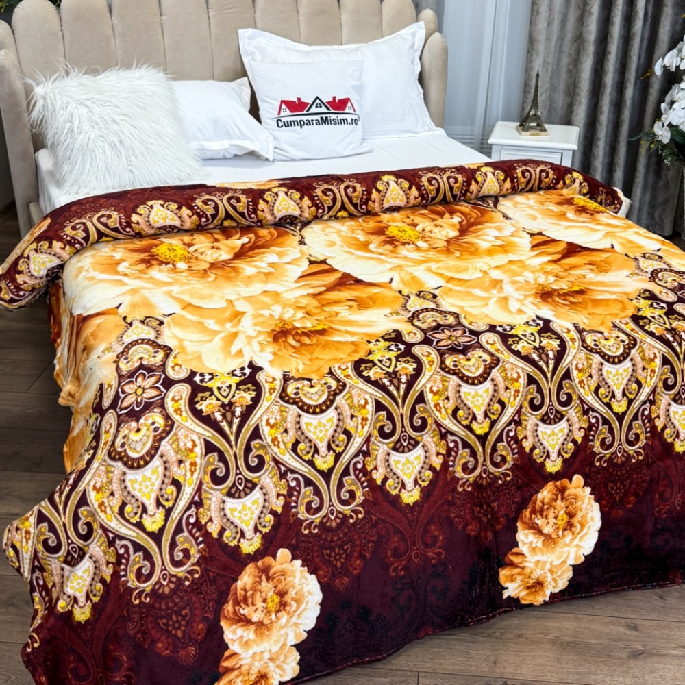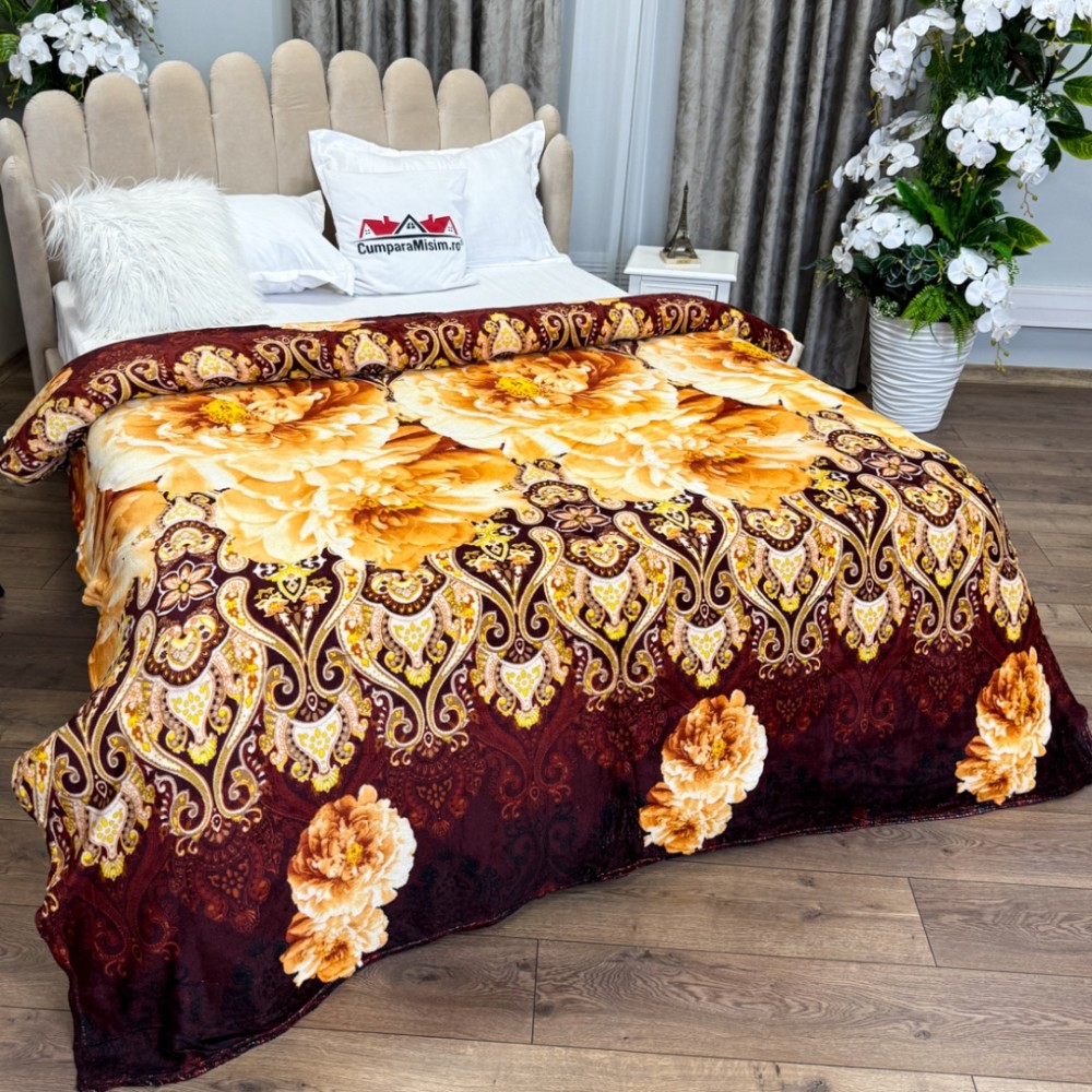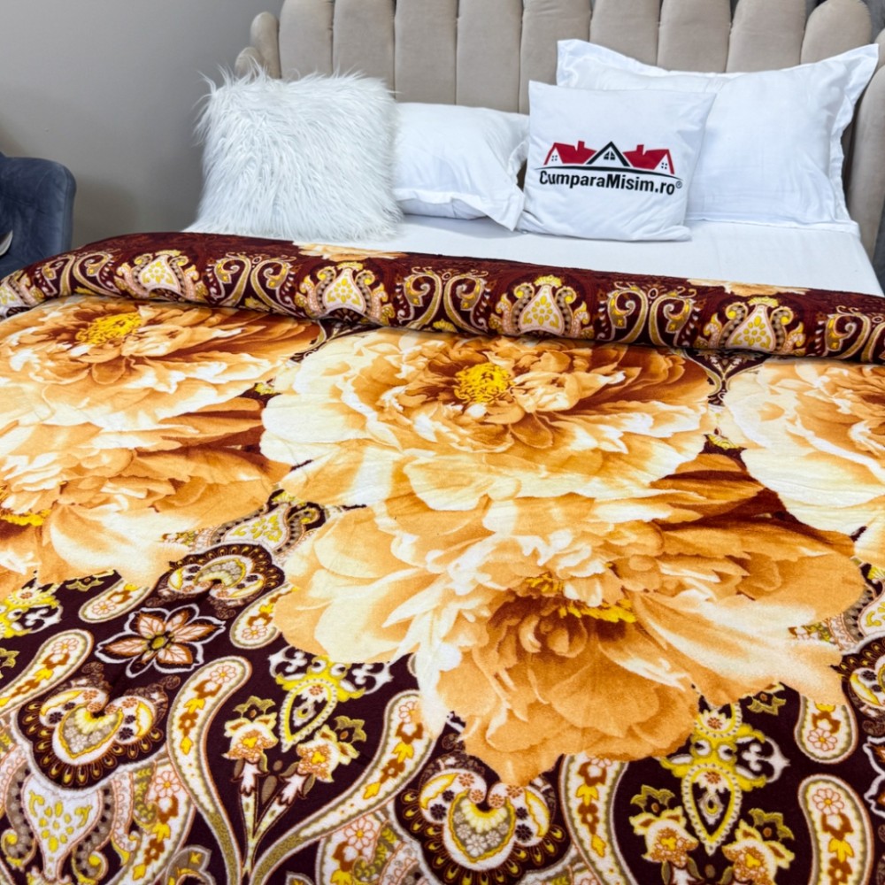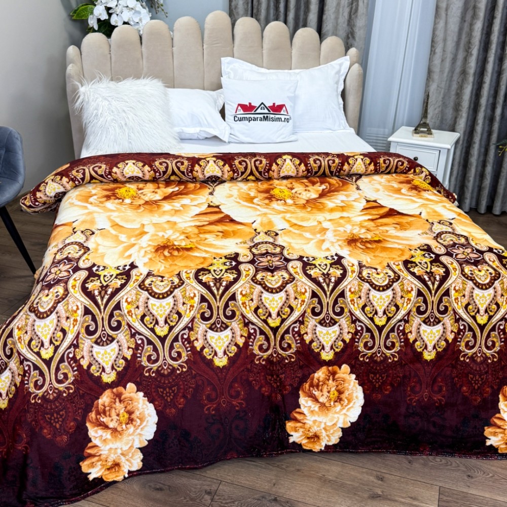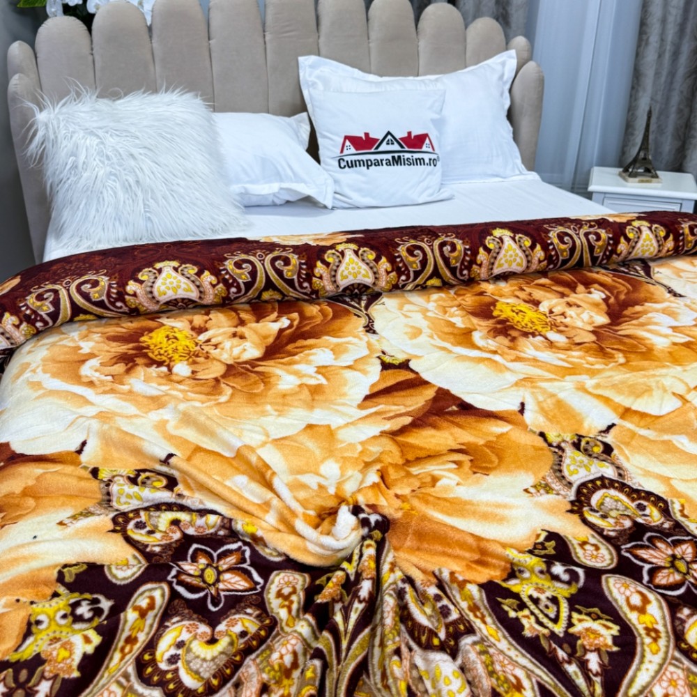 Patura CoCoLiNo, 195x210cm, Maro, Galben, flori, cod produs: CSA-PT22