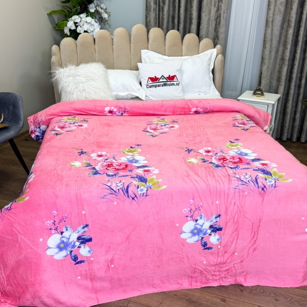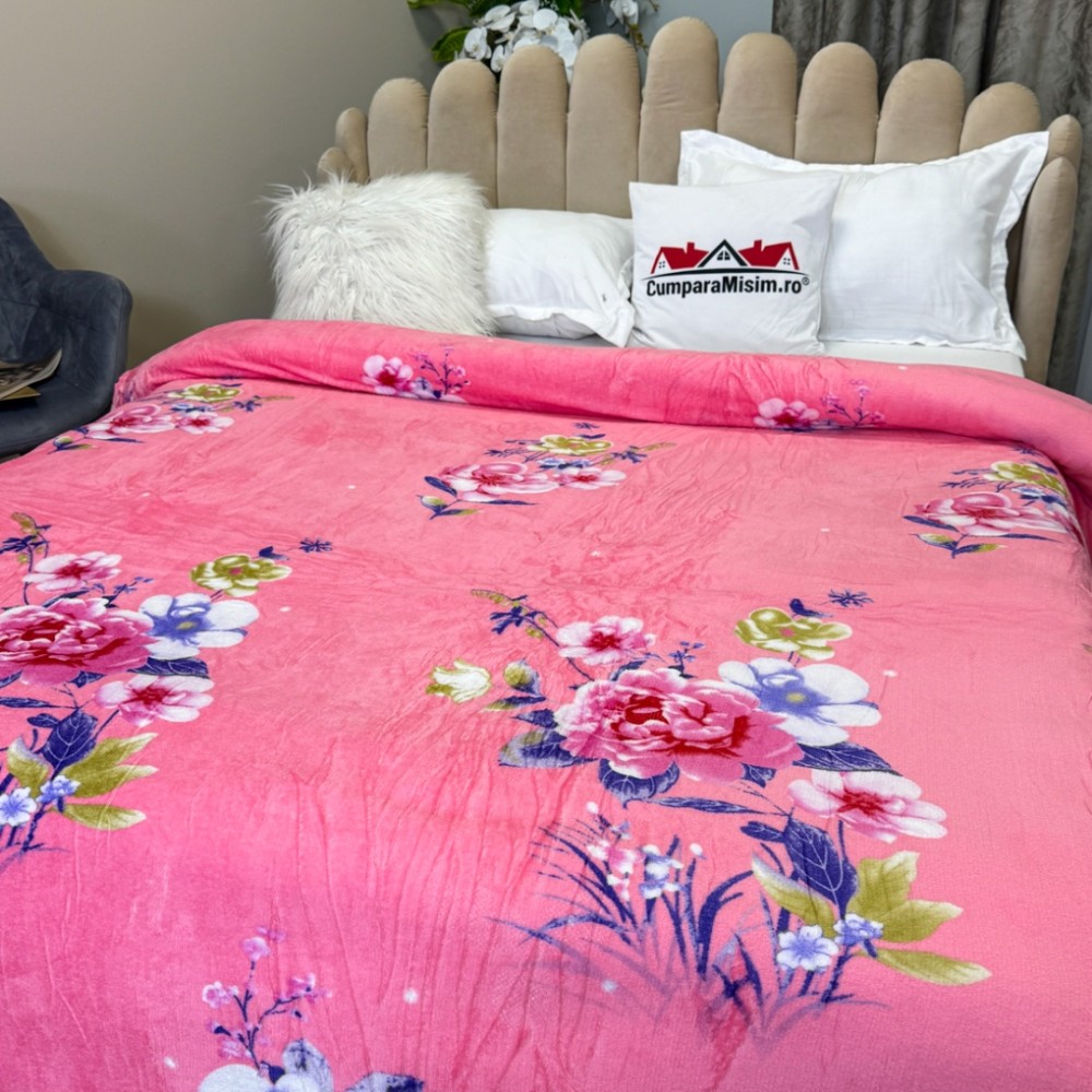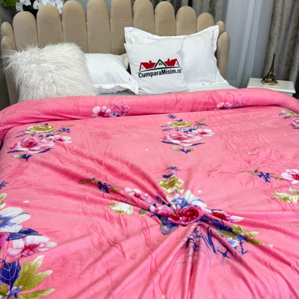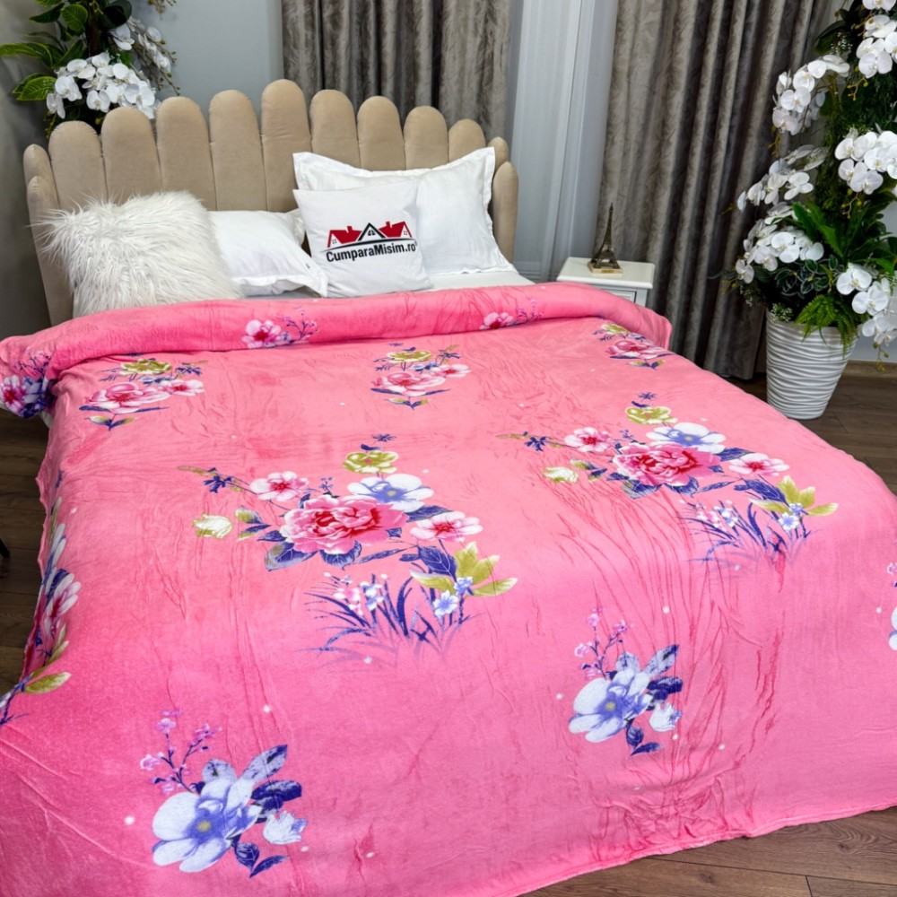 Patura CoCoLiNo, 195x210cm, Roz, flori, cod produs: CSA-PT10